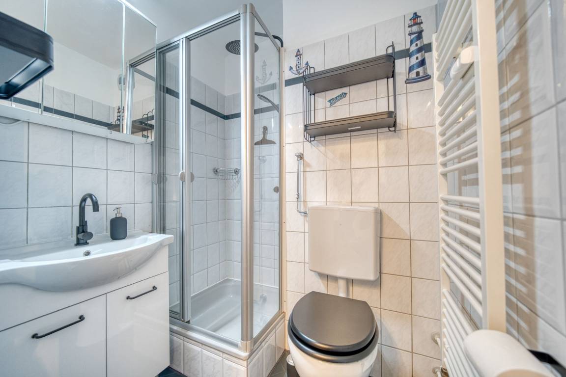 Die Wohnung ist ideal für Familien: Schlafzimmer mit Doppelbett für die Eltern, Kinderzimmer mit Etagenbett, Wohnbereich mit Schlafcouch. Die voll ausgestattete Küche verfügt über Cerankochfeld, Backofen, Geschirrspüler, Kühlschrank mit Gefrierfach, Kaffeemaschine, Wasserkocher und Toaster. Modernes Bad mit Duschkabine und Handtuchtrockner. Balkon mit seitlichem Meerblick. Nur ca. 300 m zum Strand, Einkaufsmöglichkeiten, Spielplätze und Restaurants fußläufig erreichbar. WLAN inklusive. Perfekte Unterkunft für Familienurlaub oder längeren Aufenthalt an der Ostseeküste.