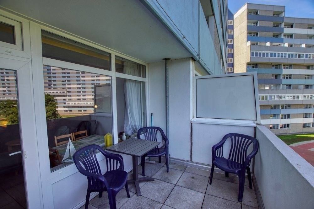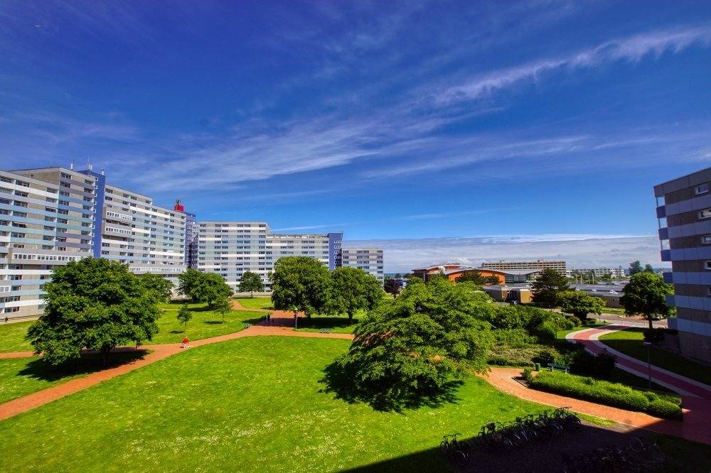 Die 52 m² große Ferienwohnung im Haus O, 3. Etage, bietet Platz für bis zu 4 Personen. Auf dem Balkon genießen Sie Blick über den Innenhof Richtung Ostsee. Das Wohn-Schlafzimmer verfügt über Doppelbett, Sessel, Sofa, Flachbild-TV und Esstisch. Das separate Schlafzimmer hat ein Etagenbett. Die Küche ist komplett mit Ceranherd, Kühlschrank mit Gefrierfach, Geschirrspüler, Mikrowelle, Wasserkocher und Toaster ausgestattet. Das Bad bietet Dusche, WC und Handtuchtrockner. WLAN inklusive.