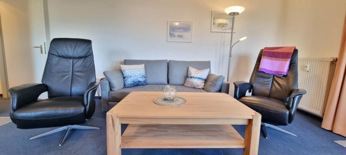 Willkommen in unserer charmanten Ferienwohnung, die Ihnen alles bietet, was Sie für einen entspannten Urlaub benötigen. Der offene Wohnbereich ist mit einem komfortablen Relax-Sessel und einem praktischen Schlafsofa ausgestattet – perfekt, um nach einem erlebnisreichen Tag zu entspannen oder zusätzliche Schlafmöglichkeiten für Gäste zu schaffen. Hier können Sie gemütliche Abende verbringen, fernsehen oder einfach die Ruhe genießen.