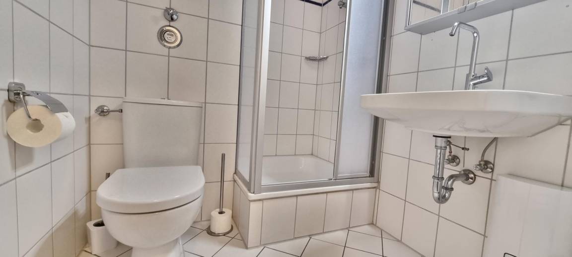 Für erholsamen Schlaf steht ein separates Schlafzimmer mit einem komfortablen Doppelbett bereit. Genießen Sie die ruhige Atmosphäre und starten Sie ausgeruht in den neuen Tag. Das moderne Duschbad ist funktional ausgestattet und bietet Dusche, WC sowie freundliche Details, die Ihren Aufenthalt noch angenehmer machen.