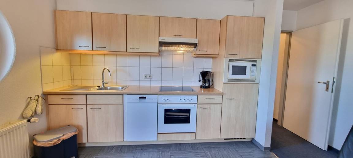 Die voll ausgestattete Küchenzeile lässt keine Wünsche offen: Sie verfügt über ein Cerankochfeld, einen Backofen, einen Kühlschrank sowie Kaffeemaschine, Wasserkocher und Toaster. So können Sie sich nach Belieben selbst verpflegen und köstliche Mahlzeiten zubereiten. Ob Frühstück, Mittagessen oder ein Abendessen mit regionalen Spezialitäten – die Küchenzeile macht es Ihnen leicht, Ihre Urlaubstage flexibel zu gestalten.