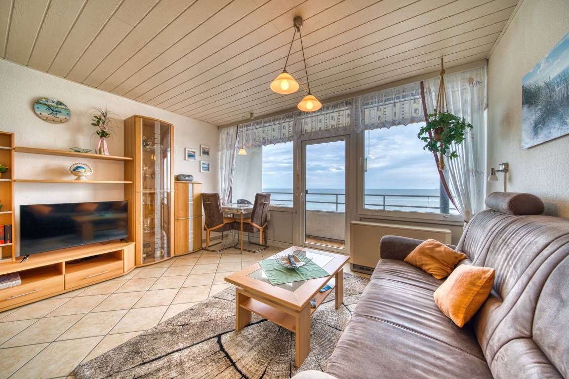 Die 36 m² große Nichtraucherwohnung ist für bis zu 2 Personen geeignet. Sie verfügt über Wohnbereich, Schlafbereich mit zwei Einzelbetten (abgetrennt durch Vorhang), Küchenzeile, Duschbad und Balkon mit Ostseeblick. Kostenloses WLAN, eigener Pkw-Stellplatz und gemeinschaftlicher Fahrradkeller sind vorhanden. Haustiere sind nicht erlaubt. Der Strand liegt ca. 10 m entfernt, der Ferienpark mit Geschäften, Gastronomie und Freizeitmöglichkeiten ca. 5 Gehminuten. Ideal für Paare, die Ostseeblick, Strandnähe und WLAN genießen möchten.