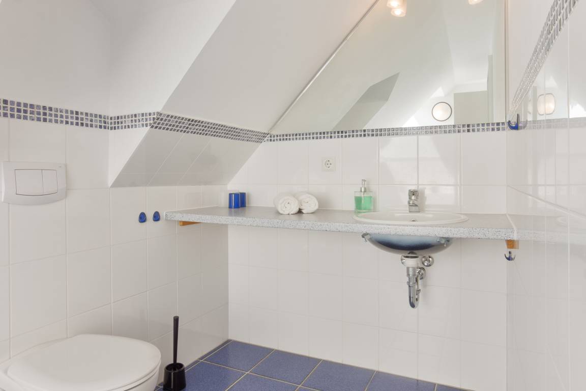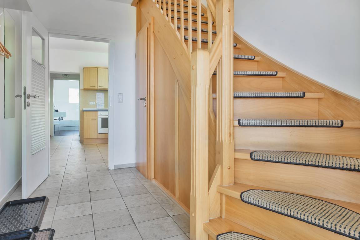 Im Obergeschoss befinden sich die beiden separaten Schlafzimmer, die jeweils mit komfortablen Boxspringbetten ausgestattet sind und ruhige Rückzugsorte für erholsame Nächte bieten.