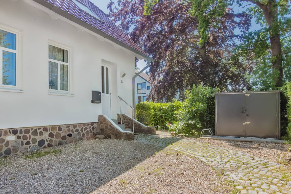 Ein eigener Pkw-Stellplatz befindet sich direkt auf dem Grundstück vor dem Haus und sorgt für eine bequeme An- und Abreise. Mitgebrachte Räder können bequem in einem abschließbaren Radverschlag eingestellt werden.