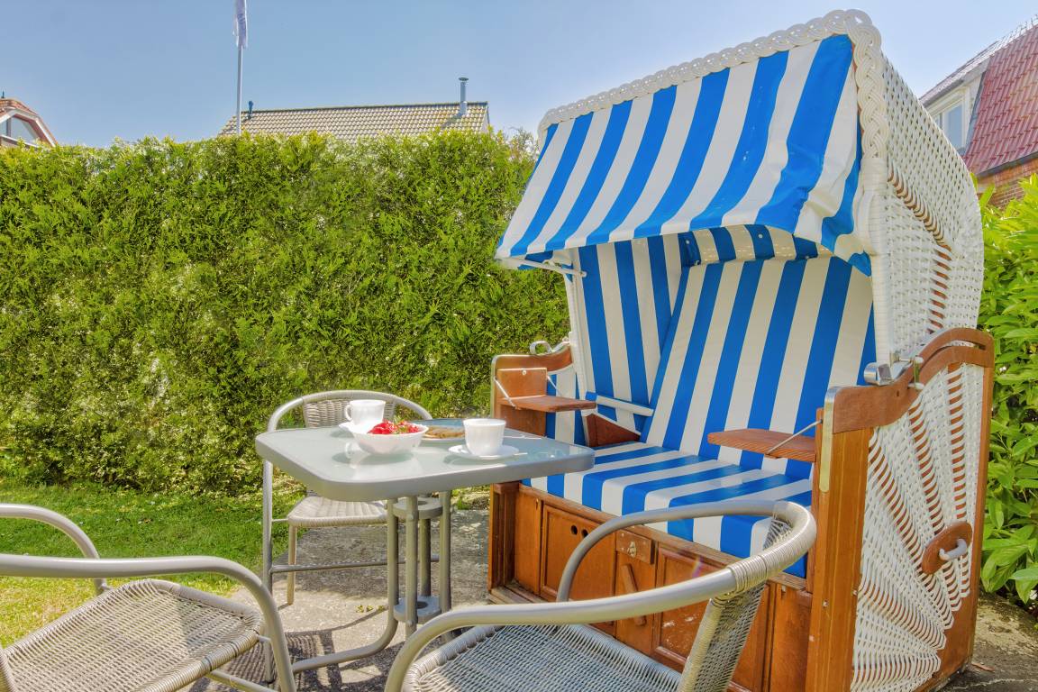 Im Sommerhalbjahr steht Ihnen vor Ort ein Strandkorb zur Verfügung, der zum Entspannen und Verweilen einlädt – ideal für sonnige Stunden oder eine kleine Auszeit im Freien.
