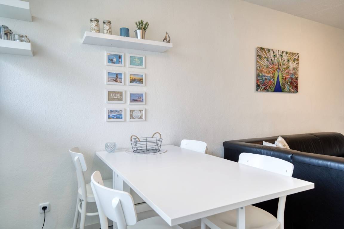 Verbringen Sie einen erholsamen Urlaub in dieser gepflegten 45 m² großen Ferienwohnung im Erdgeschoss des Hauses N, geeignet für bis zu 4 Personen. Der Balkon mit Blick auf den Innenhof bietet einen ruhigen Platz zum Entspannen in geschützter Lage.