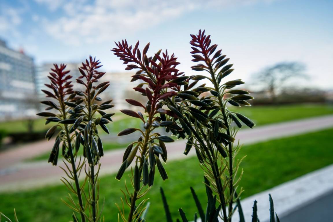 Balkon mit ruhigem Blick auf den begrünten Innenhof