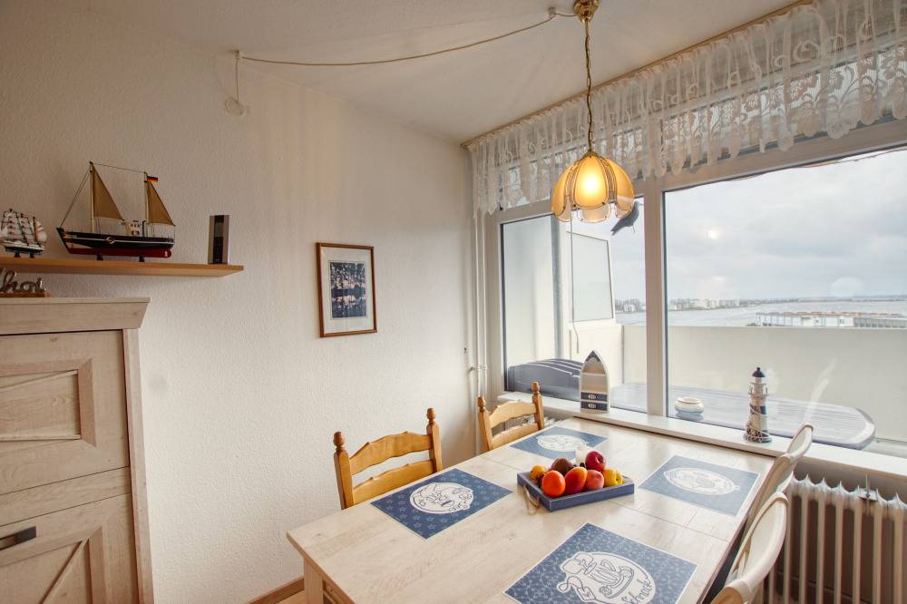 51 qm Wohnfläche: Wohn-Esszimmer mit Sitzecke, TV und Radio; Elternschlafbereich mit Einzelbetten, Kinderzimmer mit Hochbett. Küche mit 4-Plattenherd und Kühlschrank (ohne Gefrierfach), Bad mit Dusche. Großer Balkon mit Sitzgelegenheit. Nichtraucher, keine Haustiere, Fahrstuhl, Fahrradräume, kostenfreier Parkplatz. Strand ca. 300 m über Promenade, Ferienpark mit Läden, Aktiv-Hus, Schwimmbad, Sauna, Wellnesslandschaft und Kinderspielwelt – ideal für entspannte und abwechslungsreiche Urlaubstage.
