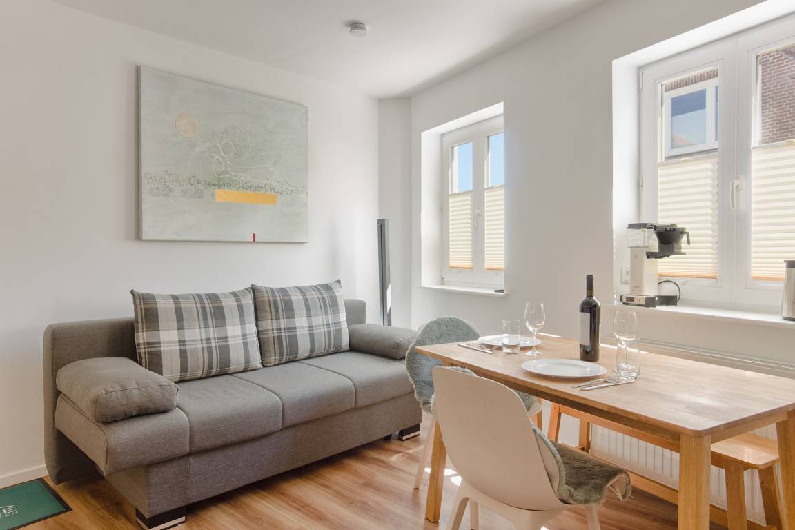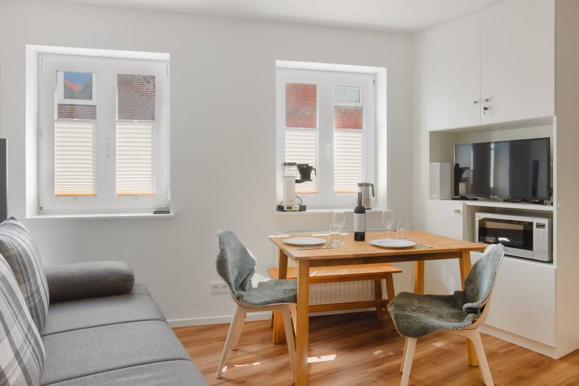 In zentraler Lage gelegen, nur wenige Meter oberhalb des attraktiven Markplatzes von Heiligenhafen, bietet TinyHome mit seinen zwei Räumen Individualisten und Menschen mit Feingeist und Blick für das Besondere eine entspannte Home-Base.