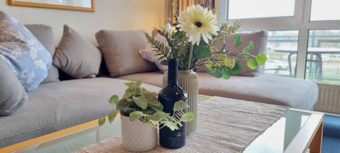 Besonders angenehm ist der möblierte Balkon in Westlage, auf dem Sie die Abendsonne genießen und den Tag mit Blick ins Grüne ausklingen lassen können. Die Wohnung liegt ruhig in der 2. Etage und bietet eine entspannte Atmosphäre. Ein PKW-Stellplatz direkt am Haus ermöglicht eine stressfreie Anreise und flexible Ausflüge. Die Wohnung ist eine Nichtraucherwohnung, Haustiere sind nicht erlaubt.