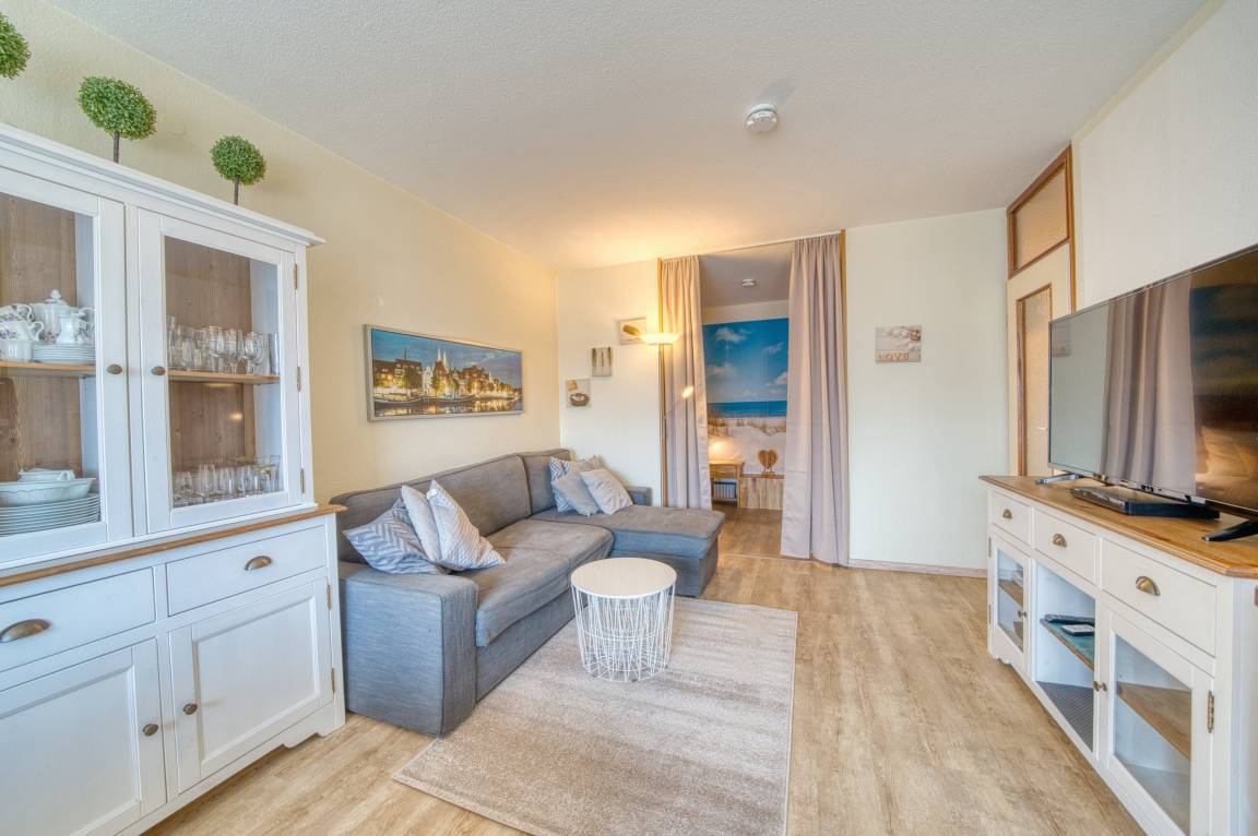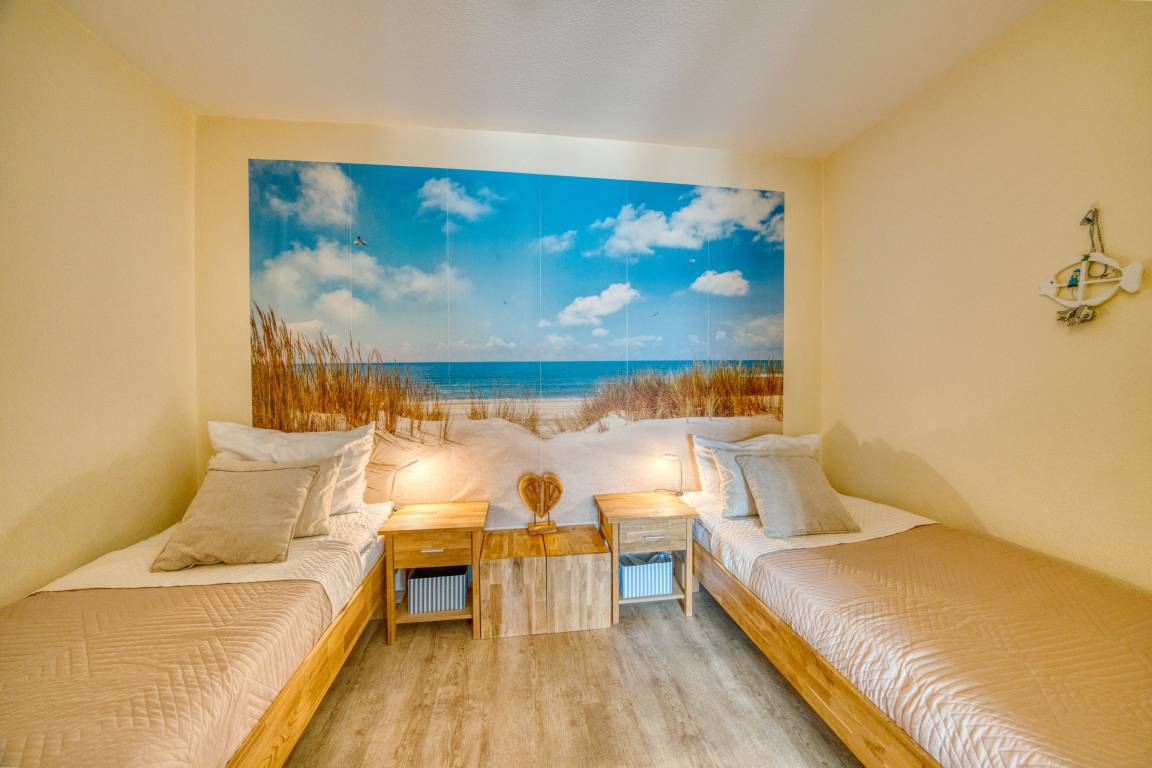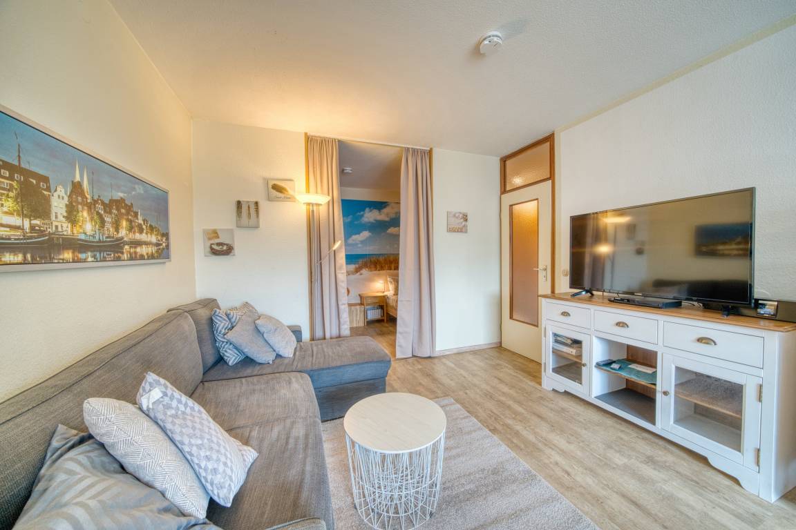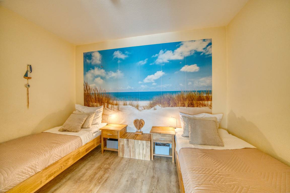 Südbalkon mit Binnenseeblick, abgetrennter Schlafbereich mit zwei Einzelbetten, separates Kinderzimmer mit Etagenbett, WLAN. Küche mit Cerankochfeld, Geschirrspüler, Kaffeemaschine und weiteren Utensilien. Bad mit Duschkabine und Handtuchtrockner. Ca. 300 m zum Strand, kostenloser Parkplatz, Fahrstuhl, abschließbare Fahrradräume, ca. 30 m zum Aktiv-Hus und Ladenzeile. Nichtraucherwohnung, keine Haustiere. Bonus: Freikarte für die Kinderspielwelt.