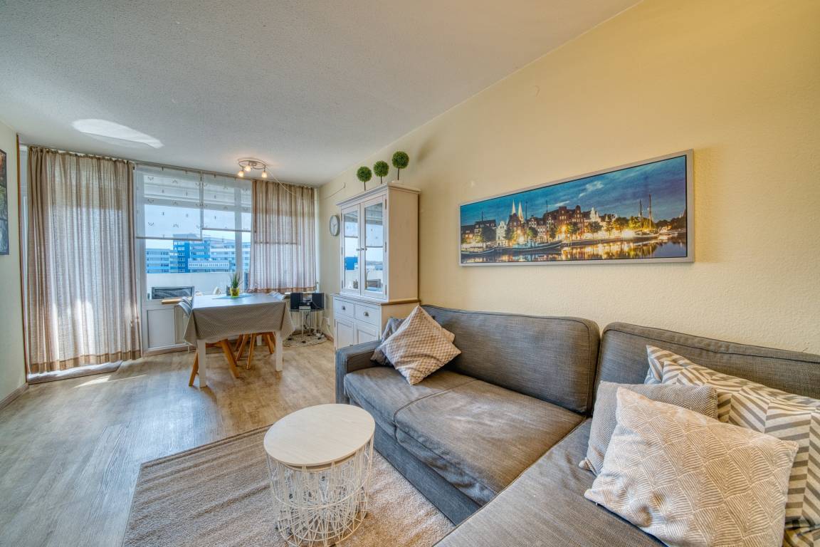 Willkommen in dieser gemütlichen Ferienwohnung im 7. Obergeschoss des Hauses C im Ostsee-Ferienpark Heiligenhafen! Mit Platz für bis zu 4 Personen, einem seitlichen Blick auf den Binnensee und liebevoll gestalteten Wohnbereichen ist sie besonders gut für Familien geeignet.
