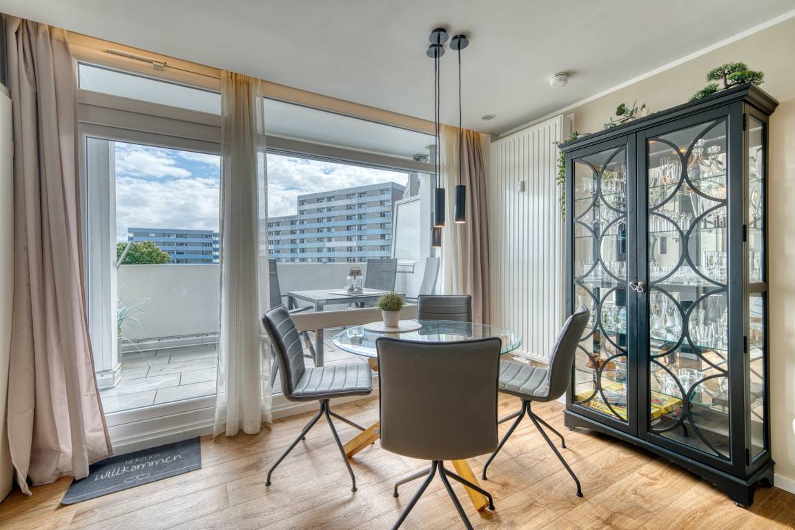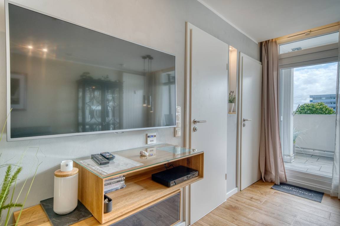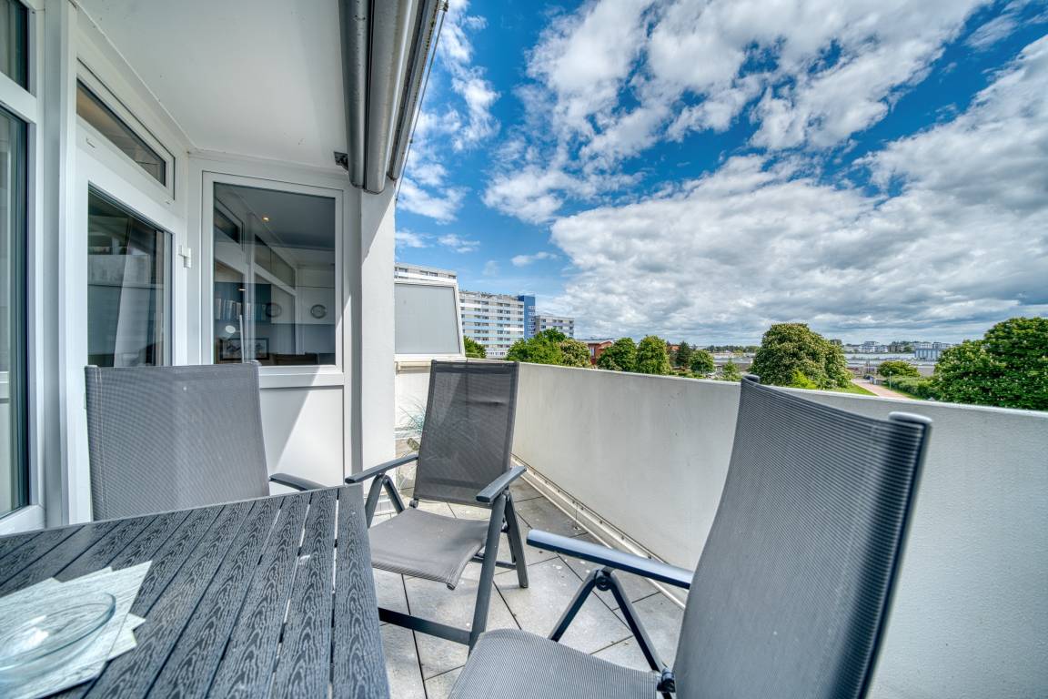 Verbringen Sie Ihren Urlaub in dieser gemütlichen Ferienwohnung im Ferienpark Heiligenhafen, gelegen im Haus H, Etage 3, nur 300 Meter vom Ostseestrand entfernt. Die 51 m² große Wohnung bietet Platz für bis zu 3 Personen und verfügt über einen großen, möblierten Balkon mit Markise und Blick ins Grüne. Zur Ausstattung gehören ein separater Schlafbereich mit Doppelbett und TV, ein Kinderzimmer mit Schlafcouch und TV sowie kostenfreies WLAN. Die moderne Küche ist vollständig ausgestattet mit Cerankochfeld, Backofen, Geschirrspüler und Kühlschrank mit Gefrierfach. Das Bad bietet einen niedrigen Duscheinstieg. Von Mitte Mai bis September steht ein kostenloser Strandkorb zur Verfügung. Nichtraucherwohnung, keine Haustiere. Fahrstuhl, Parkplatz und Fahrradabstellräume vorhanden. Strand, Aktiv-Hus, Restaurants und Einkaufsmöglichkeiten befinden sich in unmittelbarer Nähe.