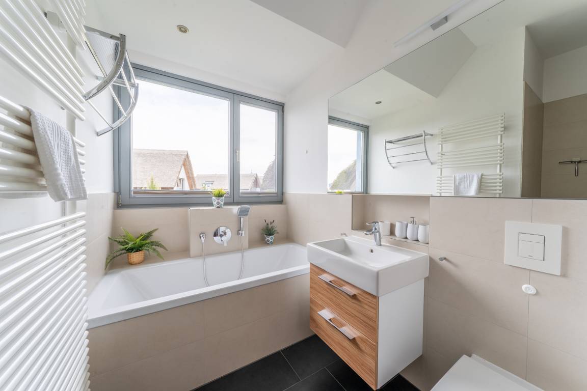 Damit Sie im SÜDSTRANDHUS ALLERGIKERFREUNDLICH wohnen können, haben wir einen ÖKOVINYLBODEN verlegen und die Wände in allen Wohnräumen mit MINERALFARBEN streichen lassen. Die Möbel sind größtenteils aus VOLLHOLZ und ausgedünstet. Die sehr hochwertige Inneneinrichtung ist darauf ausgelegt, "Staubfänger" zu vermeiden, um Ihnen einen unbeschwerten Urlaub zu ermöglichen. Und auch der ganze Sand bleibt draußen: die vielen großen und kleinen Dinge lassen sich wunderbar im abschließbaren Außenabstellraum unterbringen.