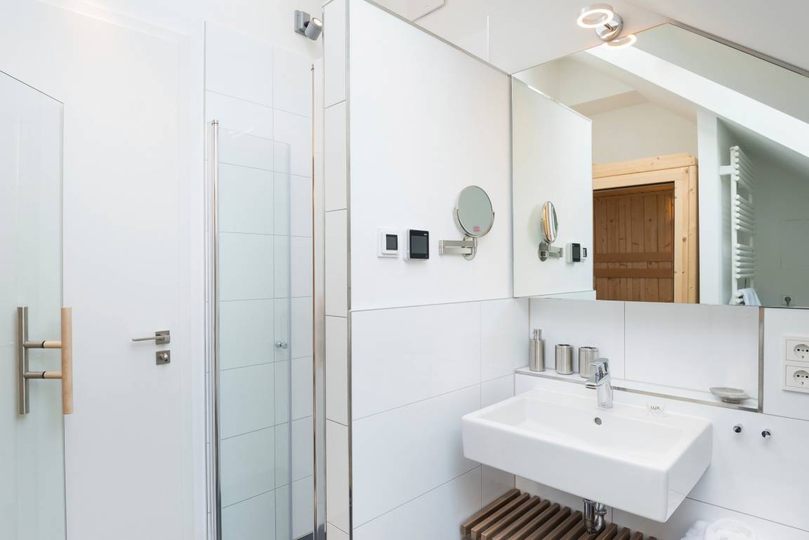 „Ein Appartement in super Lage mit Kamin und Sauna, die wir gerne genutzt haben! Besonders haben uns die guten Boxspring- Enten gefallen. Wir waren mit der Ausstattung des Wohnzimmers/Esszimmers nicht so zufrieden: Sofa und Sessel luden nicht zum gemütlichen Faulenzen ein - Tenor: Schick aber unbequem. Dieses gilt auch für die Essstühle. Die Messer müssten dringend geschärft werden, ansonsten ist die Küche aber sehr gut ausgestattet!“