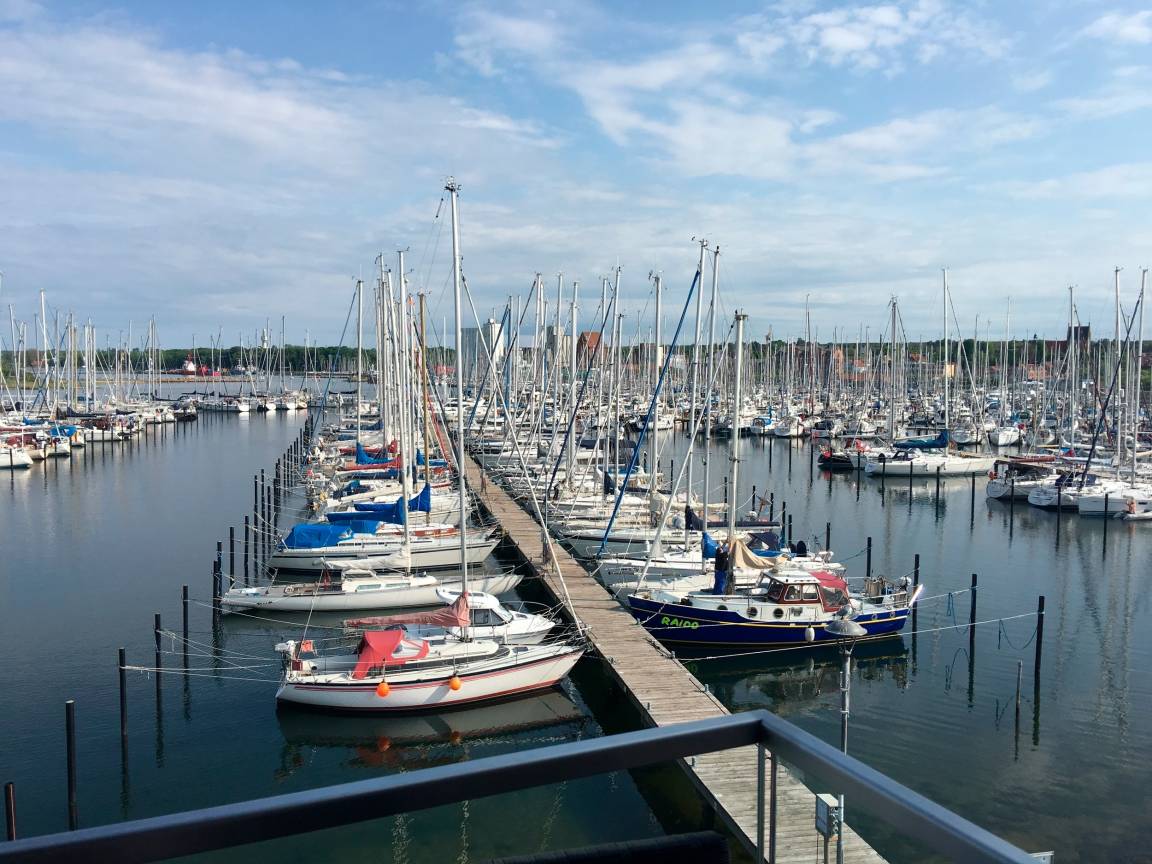„Traumhafte Aussicht über die Marina auf Heiligenhafen bis hin zur Fehmarnsundbrücke. Störend war die ausladende Stehlampe im Wohnbereich, bei der man aufpassen muss, dass man sich nicht stößt bzw. die Lampe beschädigt.“