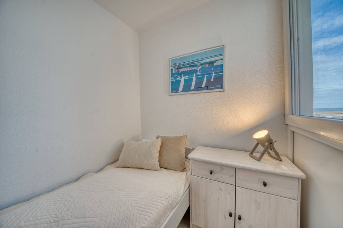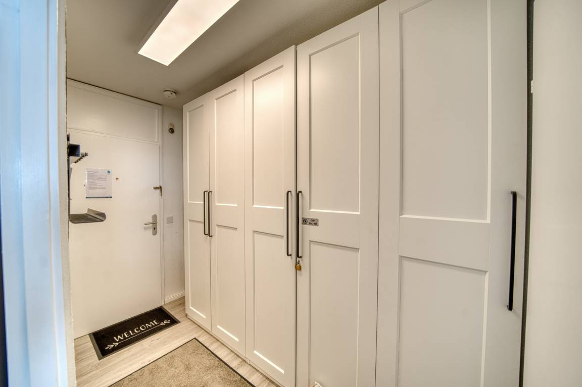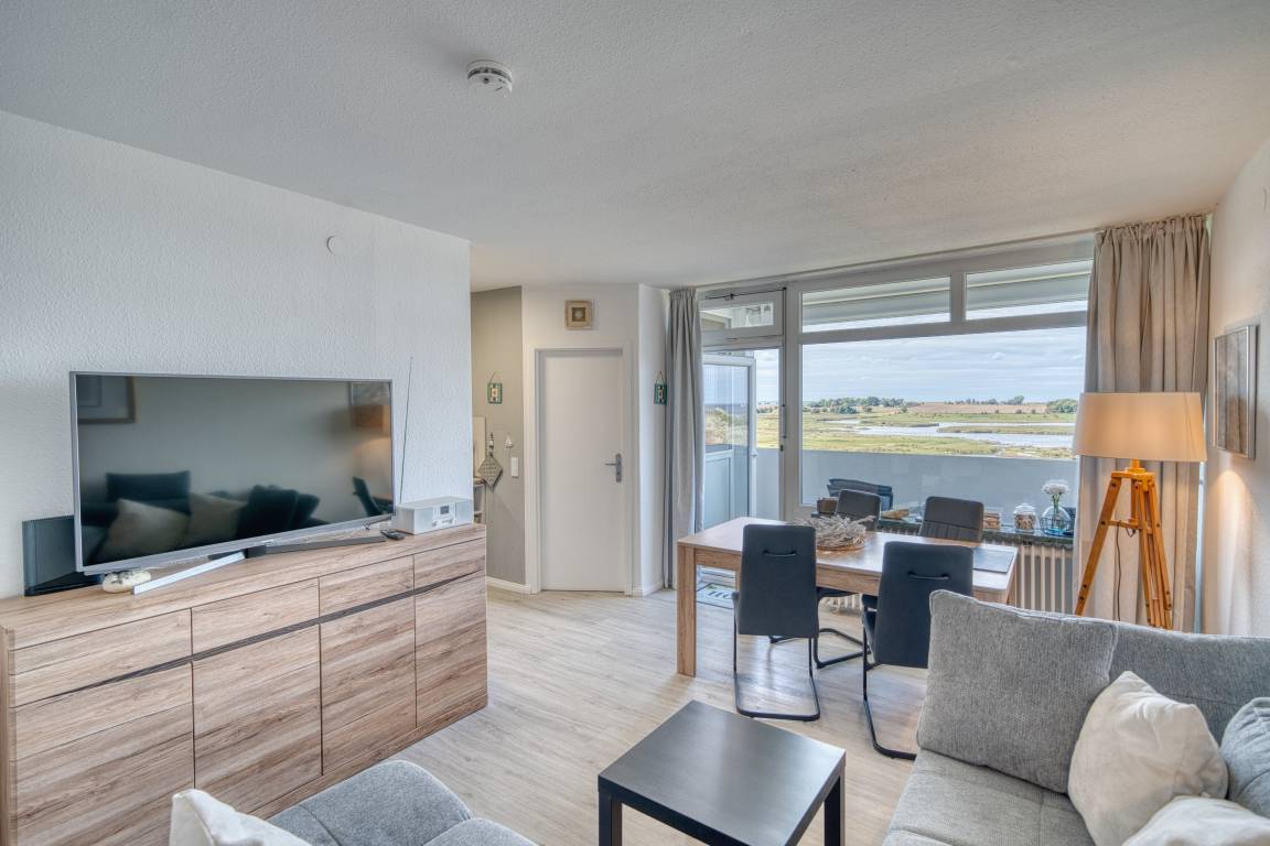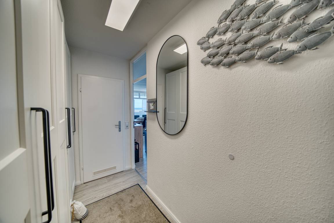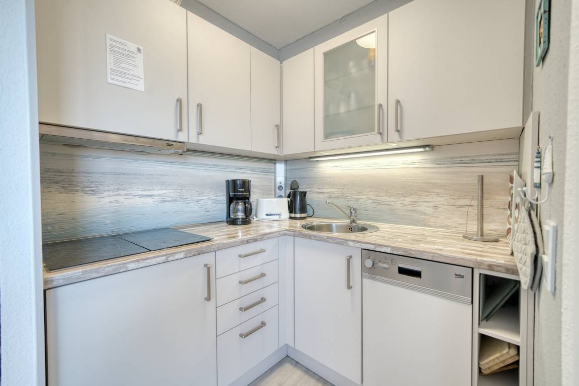 Wohn-/Esszimmer mit ausziehbarer Wohnlandschaft (140x200 cm) und 50"-Smart-TV, Elternschlafbereich mit Doppelbett (180x200), Kinderzimmer mit Einzelbett (90x190). Küche komplett ausgestattet (Kühlschrank mit Tiefkühlfach, Airfryer, Espressomaschine, Eierkocher, Handmixer, Smoothie-Maker, Kaffee-/Teeservice). Duschbad mit WC. Kostenloses WLAN. Nichtraucher, keine Haustiere, max. 4 Personen. Fahrstuhl, Fahrradräume, Strand ca. 300 m, Parkplatz vorhanden.
