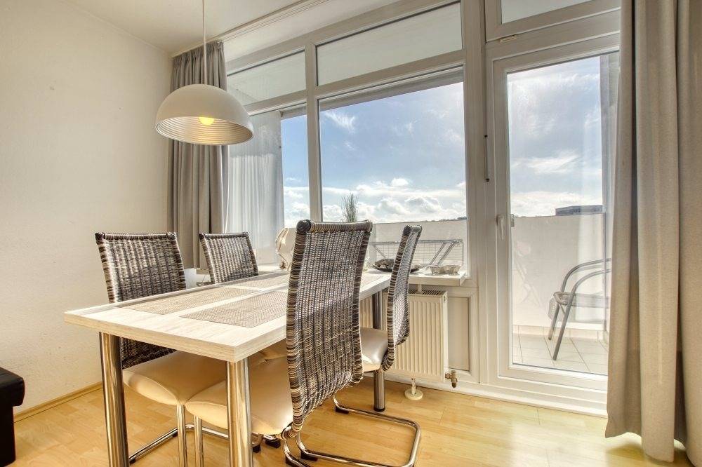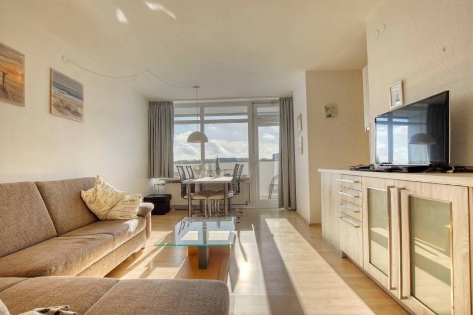 Willkommen zu Ihrem Urlaub an der Ostsee! Diese gepflegte Ferienwohnung im 7. Stock des Hauses A im Ferienpark Heiligenhafen bietet auf 45 m² Wohnfläche Platz für bis zu 4 Personen. Vom Balkon genießen Sie einen herrlichen Blick auf den Binnensee, ideal zum Entspannen.