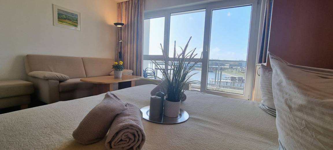Willkommen im Studio 83 in der Ostseeresidenz auf dem Steinwarder – einem gemütlichen 1-Zimmer-Appartement in traumhafter Lage zwischen Ostsee und Binnensee. Das Studio liegt in der 4. Ebene und bietet einen wunderschönen Blick auf den Binnensee von Heiligenhafen, ideal für eine entspannte Auszeit zu zweit.
