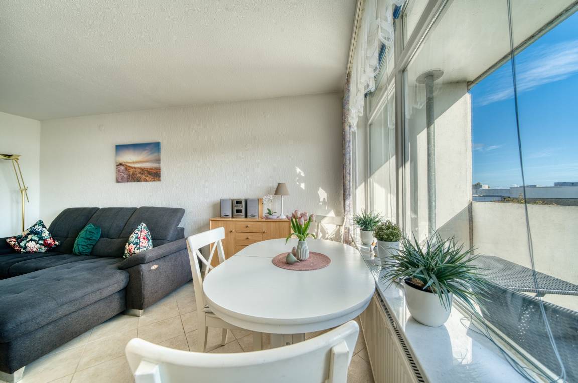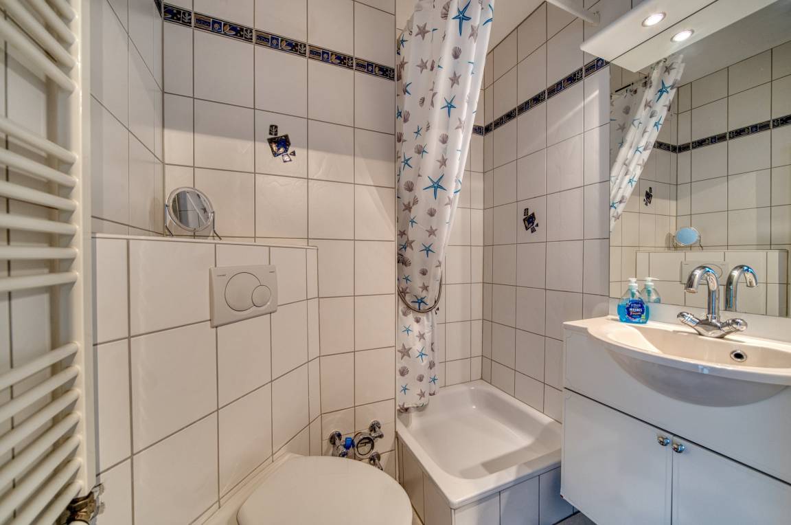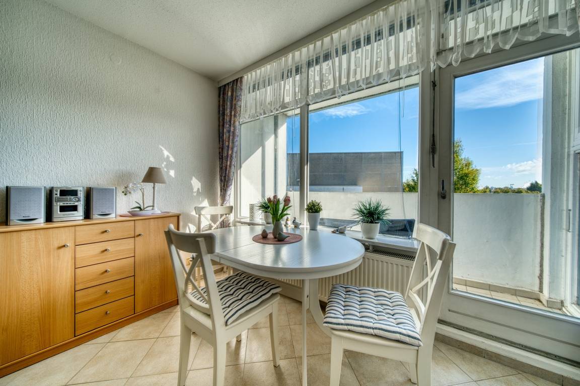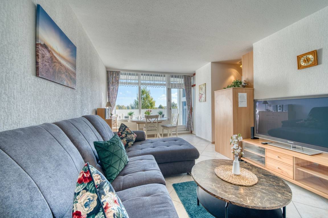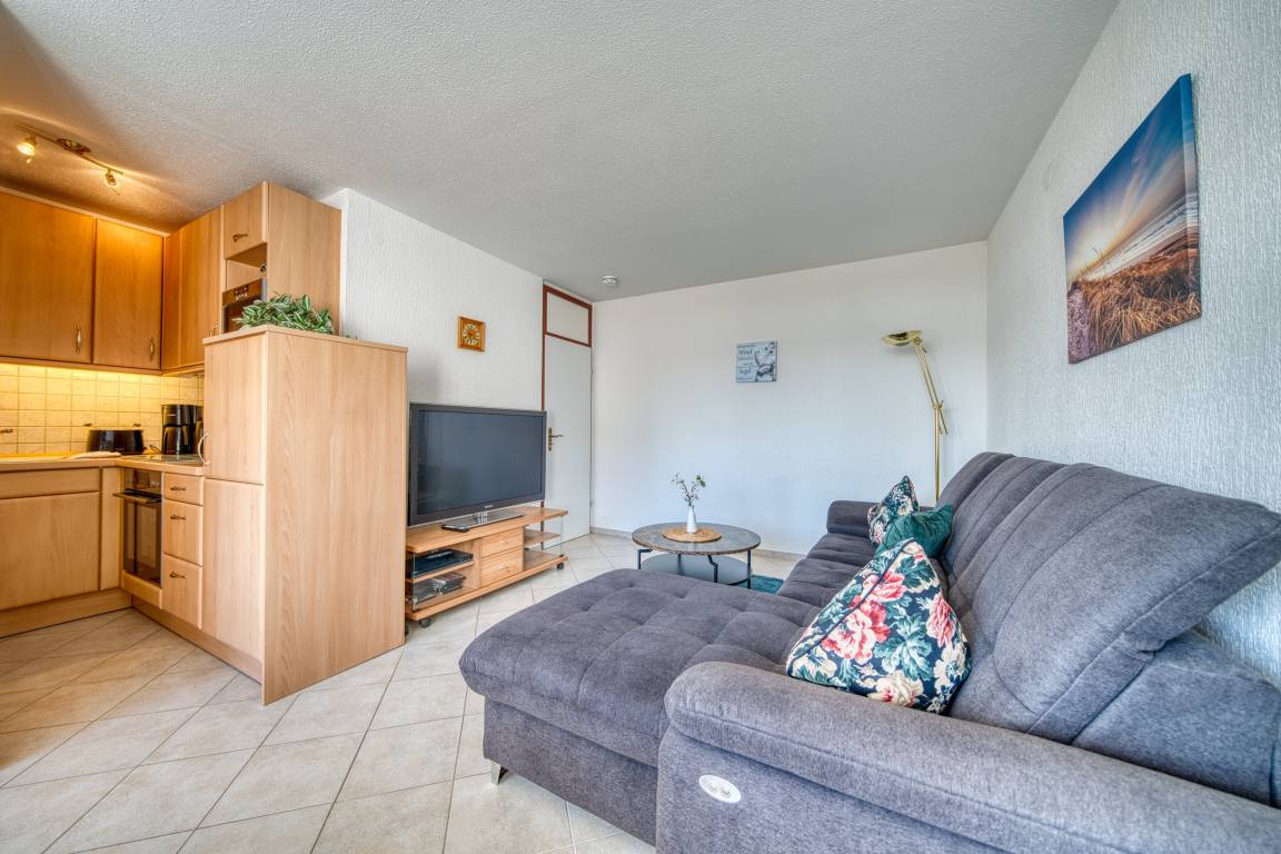 Die Wohnung verfügt über zwei Schlafzimmer, ein Wohnzimmer mit offener Küche (Backofen, Cerankochfeld, Kühlschrank, Essutensilien) und ein Badezimmer mit Dusche. Balkon mit Blick auf den Binnensee. Nichtraucherwohnung, ca. 300 m zum Strand, ideale Lage nahe Promenade, Cafés, Einkaufsmöglichkeiten und dem Aktiv-Hus mit Schwimmbad, Wellness und Kinderspielwelt.