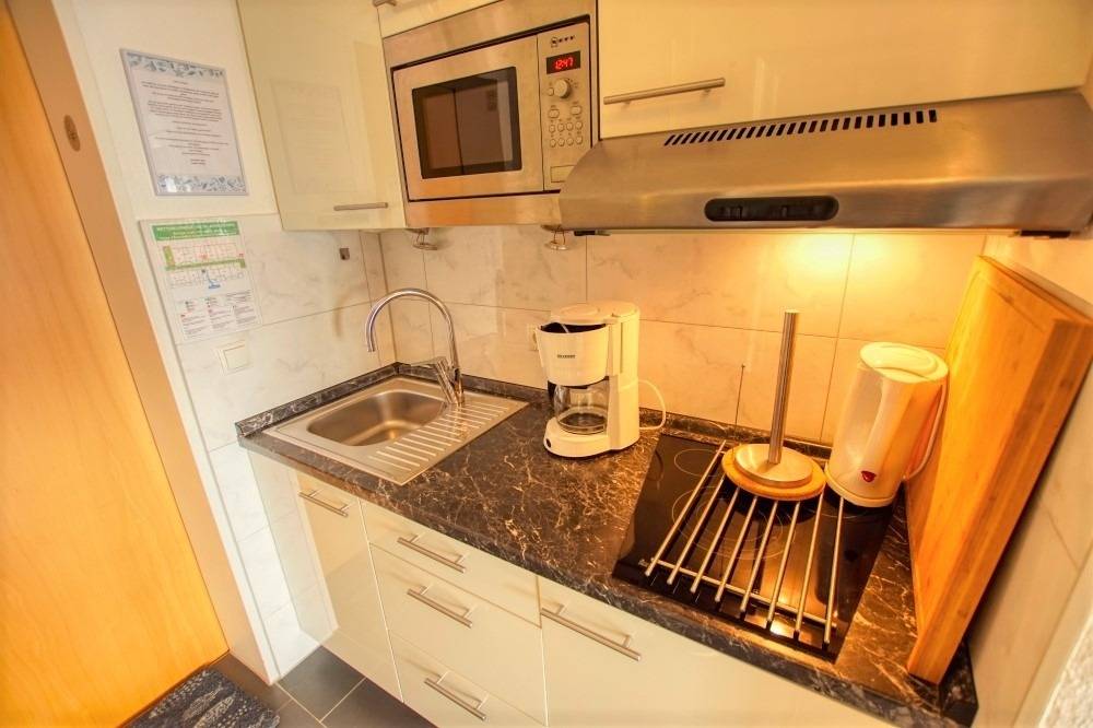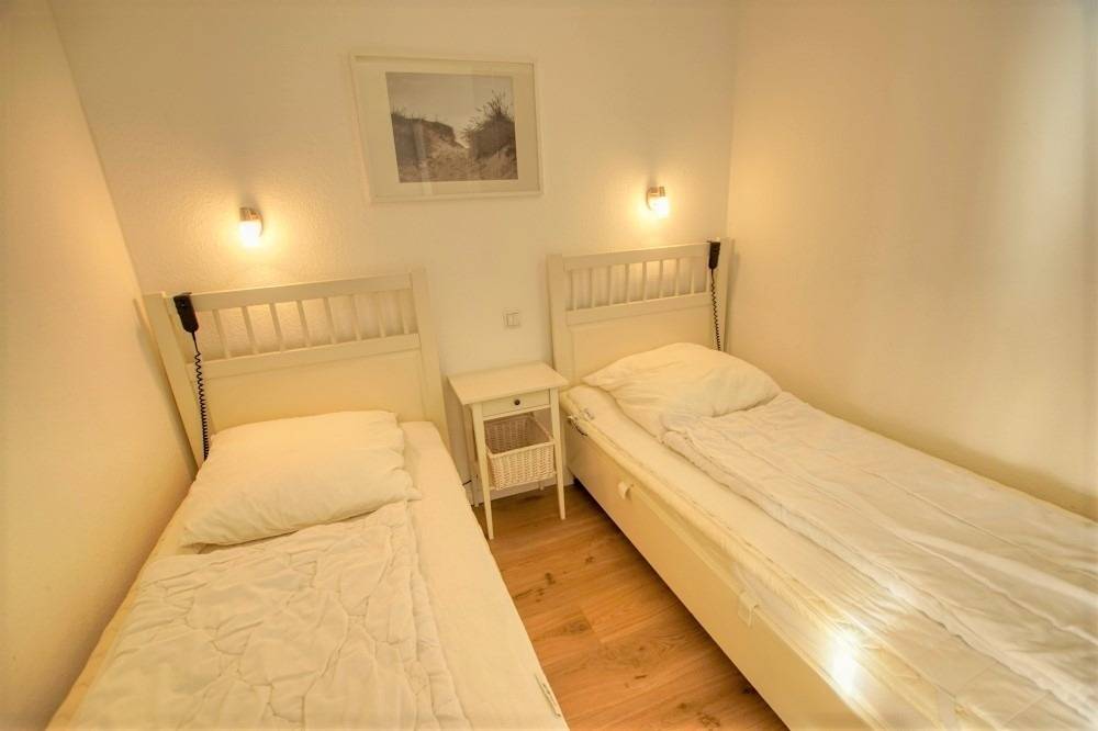 Die Wohnung verfügt über Wohn-/Schlafbereich mit zwei Einzelbetten, Laminatboden, Flachbild-TV und inklusive WLAN. Küche mit Ceranherd, Kühlschrank mit Gefrierfach, Mikrowelle, Filterkaffeemaschine, Toaster und Wasserkocher. Bad mit Dusche/WC und Handtuchtrockner. Fahrstuhl, Fahrradabstellmöglichkeiten und fester PKW-Stellplatz vorhanden. Nichtraucherwohnung, keine Haustiere. Nur wenige Schritte zum Strand und zur Promenade – ideal für entspannte Ostseetage zu zweit.