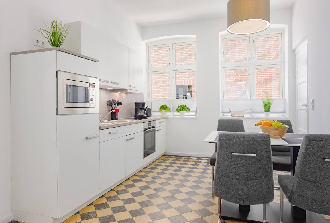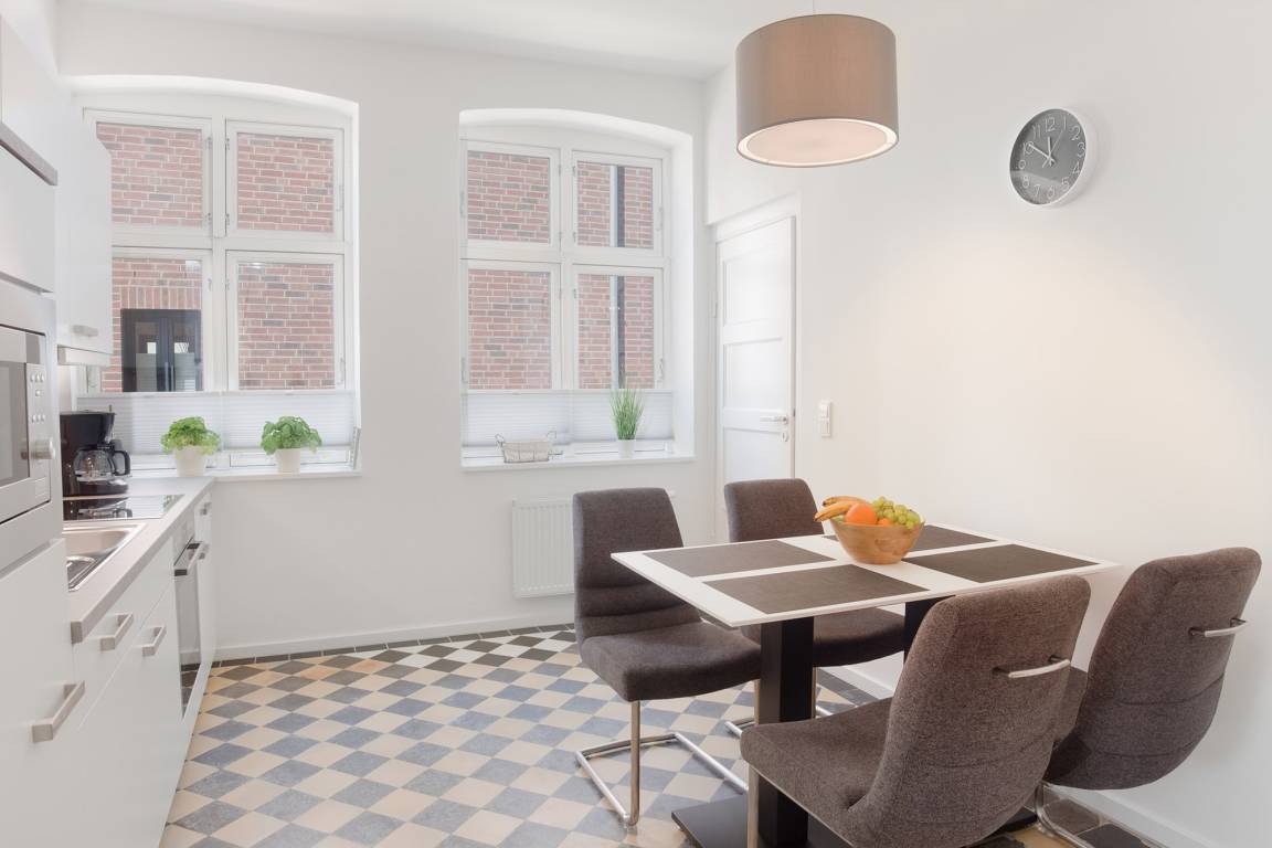Diese stilvolle Ferienwohnung befindet sich direkt im Zentrum von Heiligenhafen, im Gutshaus des „Fischerdorf Heiligenhafen". Die mondäne Wohnanlage in der historischen Altstadt verbindet höchsten Wohnkomfort mit einer erstklassigen Lage nahe dem Marktplatz, Strand und Yachthafen.