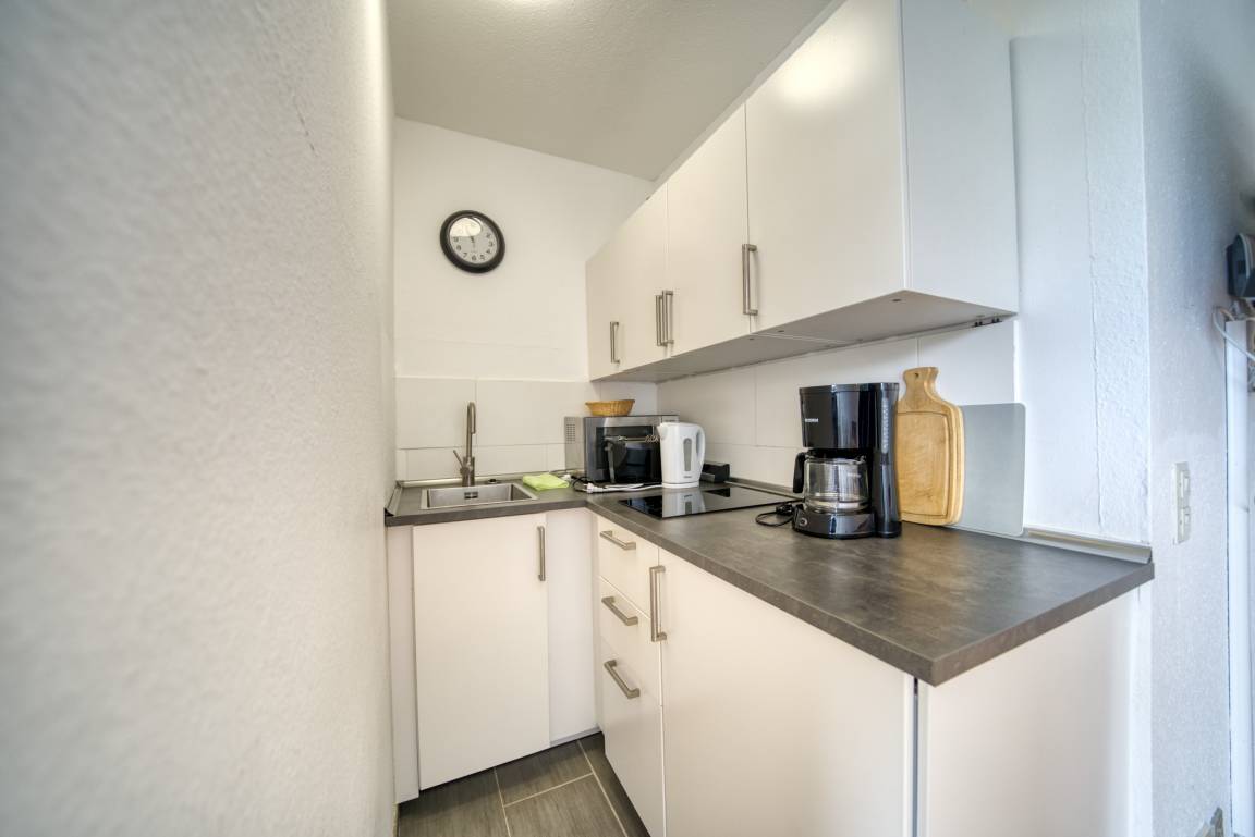 Helle und freundlich eingerichtete Ferienwohnung im Haus L Ferienpark, Erdgeschoss, mit Balkon zur Südseite. Genießen Sie viel Sonne und den Blick auf die Grünanlagen.