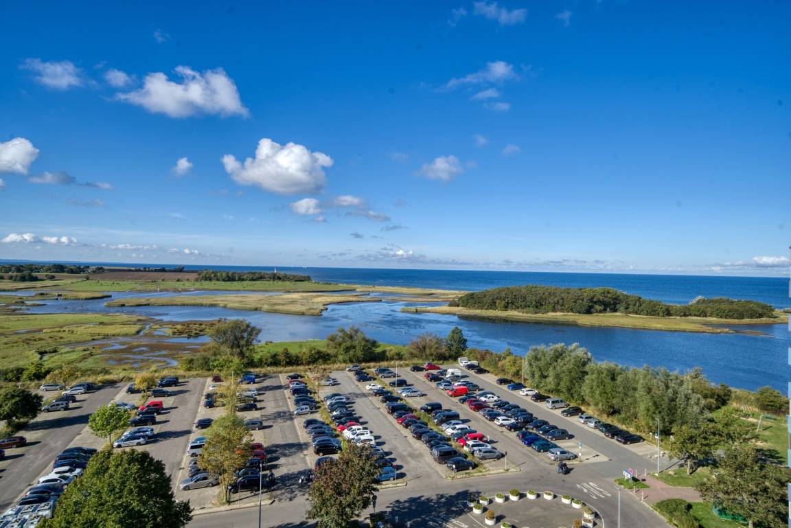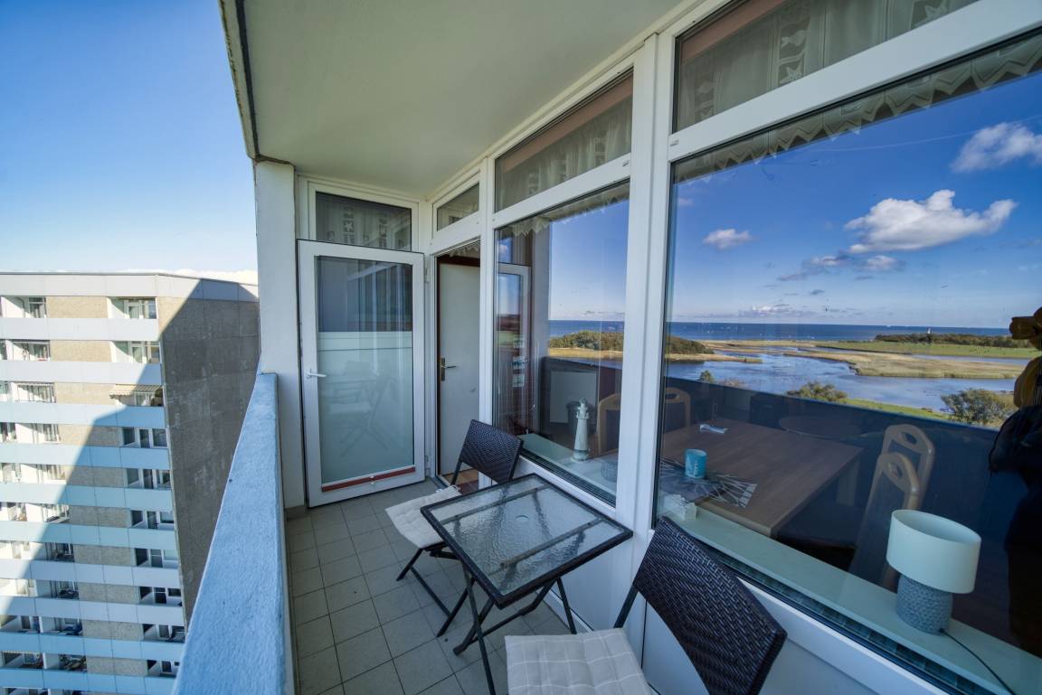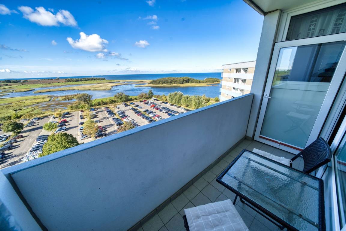 Die Ferienwohnung im Haus E, 10. Etage, mit Balkon zur Westseite, bietet einen herrlichen Ostseeblick und Sonne vom Nachmittag bis in die Abendstunden. Genießen Sie das farbenfrohe Lichterspiel des Sonnenuntergangs an der Ostsee.