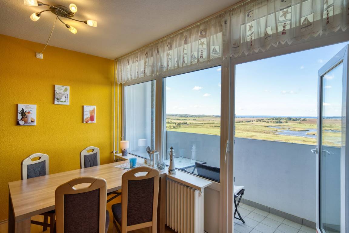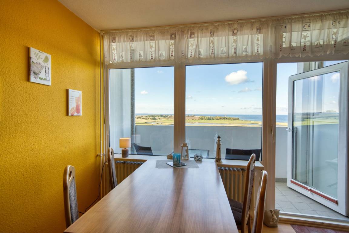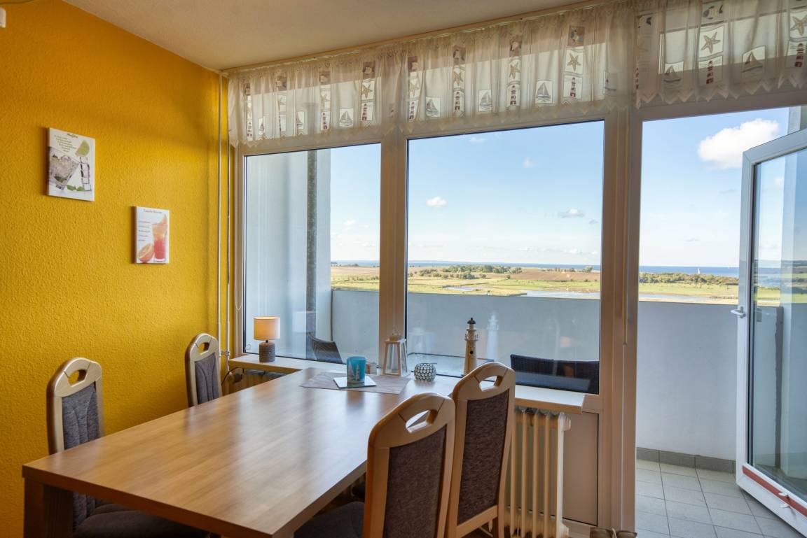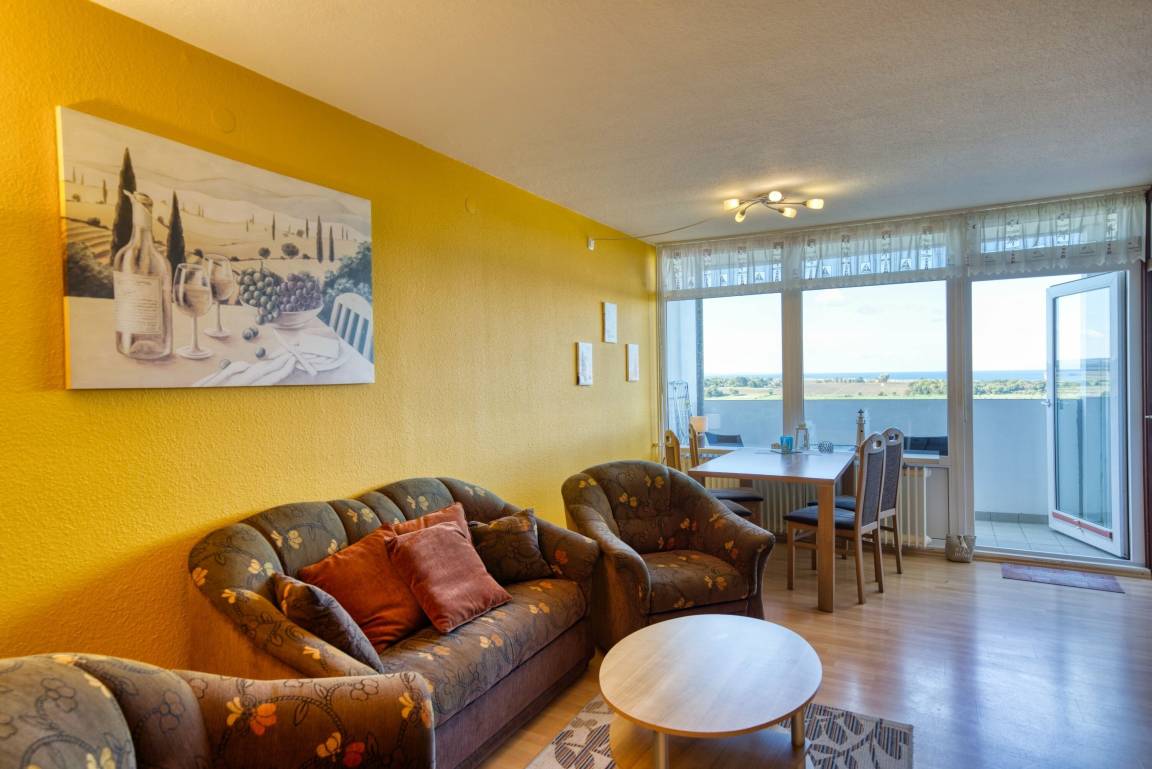 Die Ferienwohnung im Haus E, 10. Etage, mit Balkon zur Westseite, bietet einen herrlichen Ostseeblick und Sonne vom Nachmittag bis in die Abendstunden. Genießen Sie das farbenfrohe Lichterspiel des Sonnenuntergangs an der Ostsee.