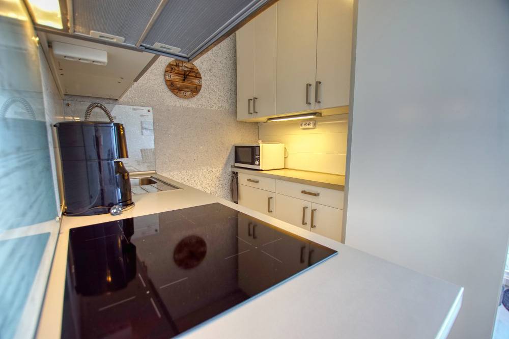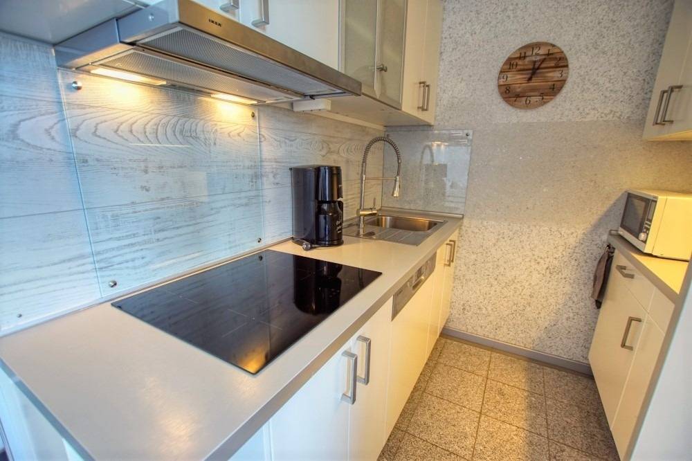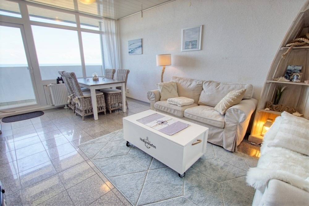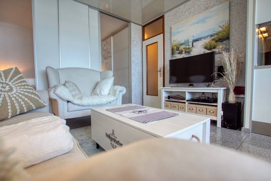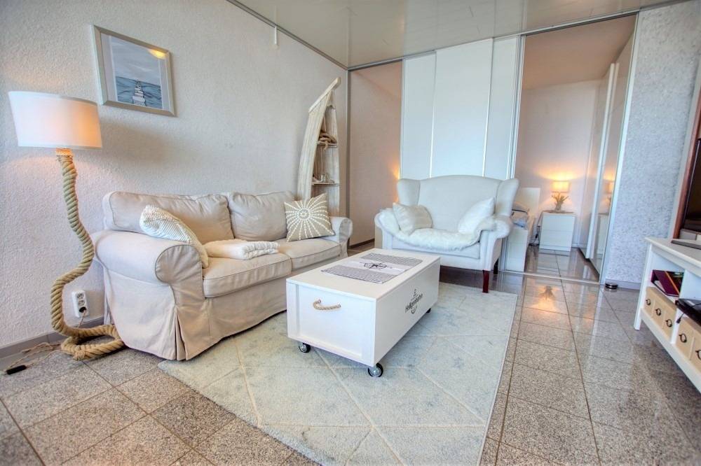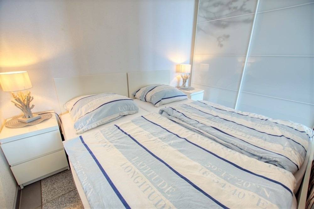 Stilvoll maritim eingerichtete Ferienwohnung im 9. OG von Haus C mit herrlichem Ostseeblick vom Balkon oder Esstisch. Ca. 45 m² für bis zu 3 Personen. Wohn-/Schlafbereich mit Doppelbett, Sofa, Sessel, Smart-TV. Separates Schlafzimmer mit Etagenbett. Voll ausgestattete Küche: Cerankochfeld, Backofen, Mikrowelle, Kühlschrank mit Gefrierfach, Geschirrspüler. Bad mit Duschkabine, WC, Handtuchtrockner. Balkon mit Panorama. Strand ca. 300 m, Fahrstuhl, Parkplatz, WLAN inklusive, Nichtraucherwohnung, keine Haustiere, abschließbare Fahrradräume.