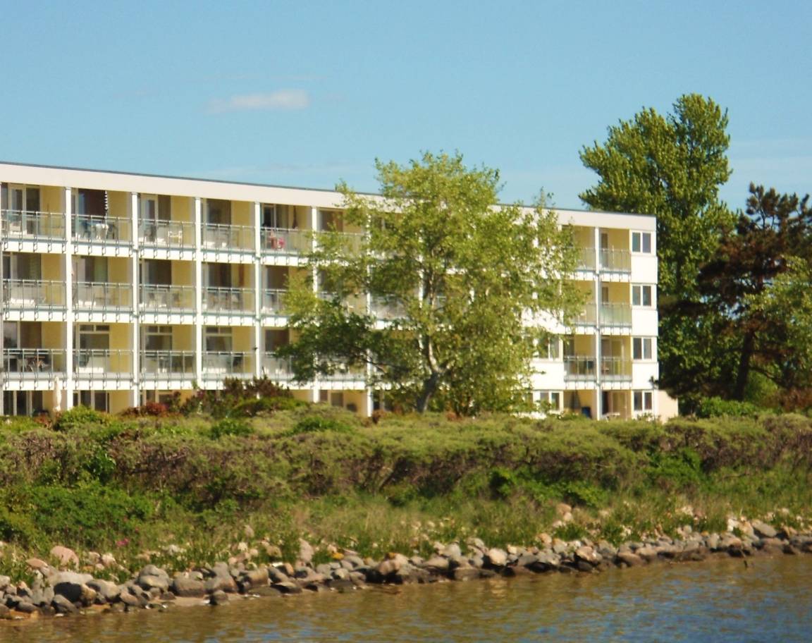 Vom sonnigen SW-Balkon genießen Sie den direkten Blick auf den angrenzenden Binnensee.
