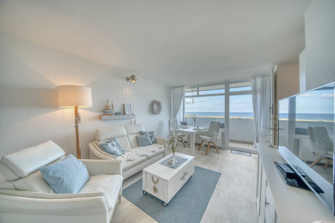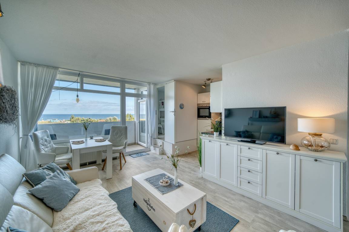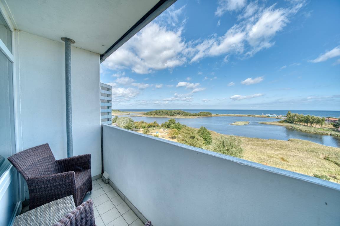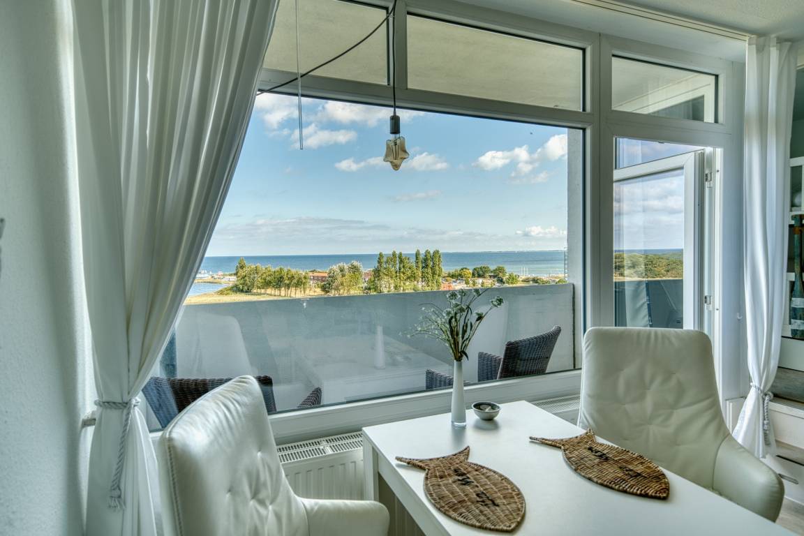 Diese helle und gepflegte Ferienwohnung im Haus B des Ferienparks Heiligenhafen liegt in der 7. Etage und bietet auf 45 m² Wohnfläche Platz für bis zu 3 Personen. Der Nordbalkon mit Meerblick lädt zum Verweilen ein – genießen Sie hier traumhafte Ausblicke auf die Ostsee.