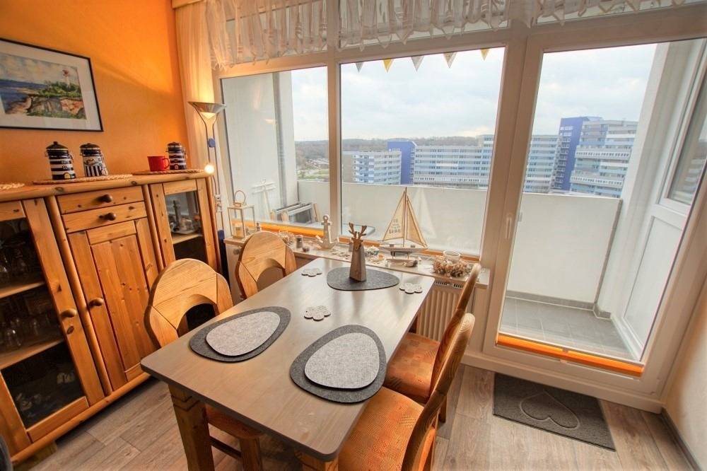 Diese gemütliche Ferienwohnung im Haus B des Ferienparks Heiligenhafen liegt in der 8. Etage und bietet auf 45 m² Platz für bis zu 4 Personen. Der sonnige Südbalkon ermöglicht viele Sonnenstunden sowie einen seitlichen Blick auf den Binnensee.