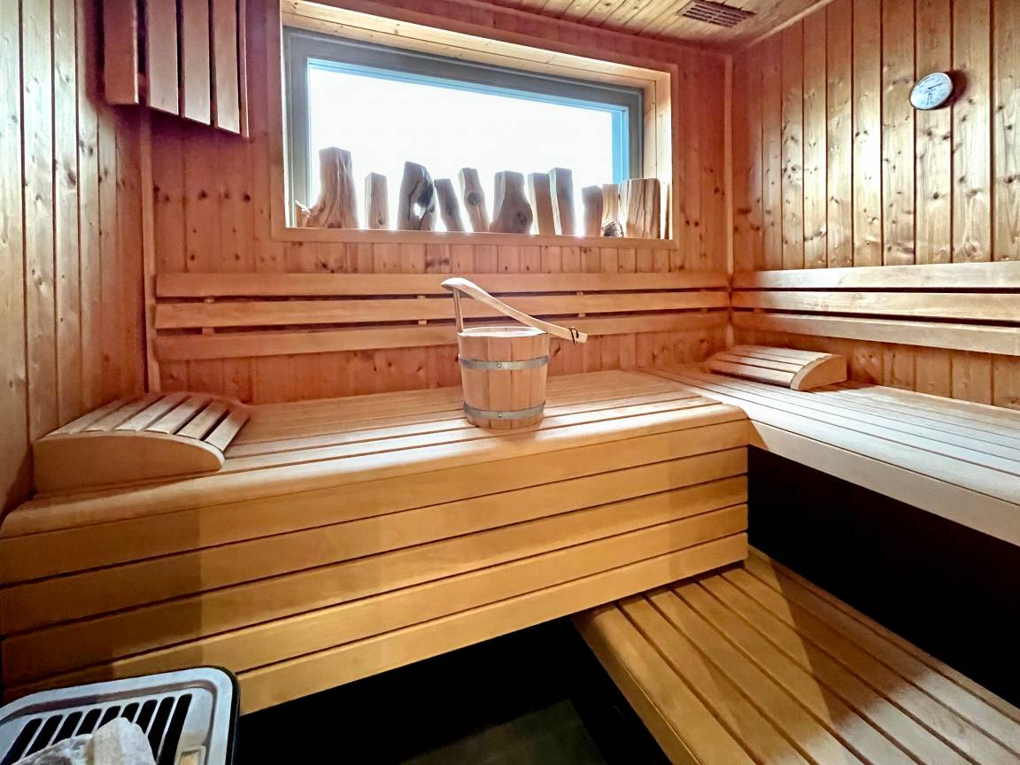 - Sauna mit großer Regen-Dusche und Kaltwasserschlauch