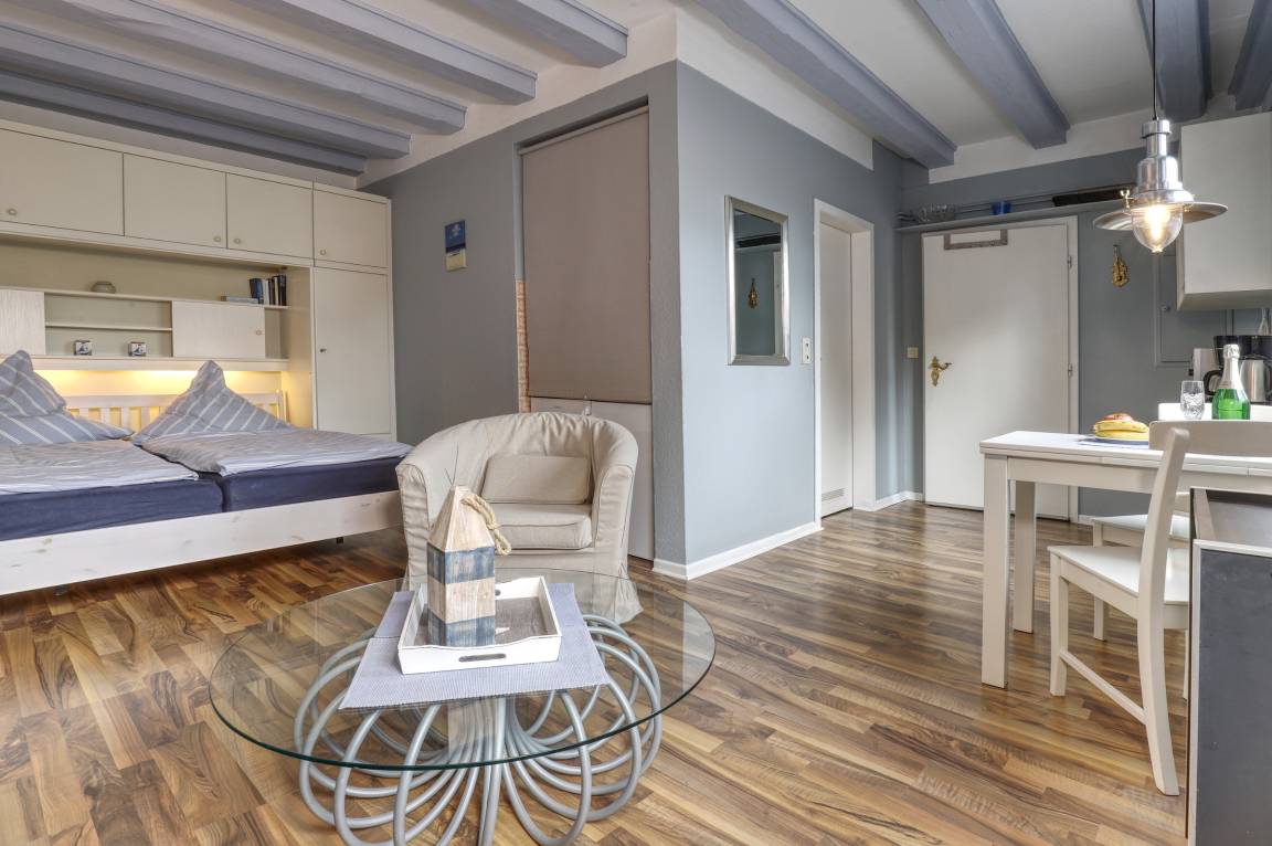 Im Wohn-/Schlafraum erwartet Sie ein komfortables Doppelbett, das zum Träumen einlädt. Für Unterhaltung ist ebenfalls gesorgt: Ein TV und ein CD-Radio sind vorhanden, ebenso wie kostenloses WLAN, damit Sie auch während Ihres Aufenthalts mit Freunden und Familie in Kontakt bleiben können.