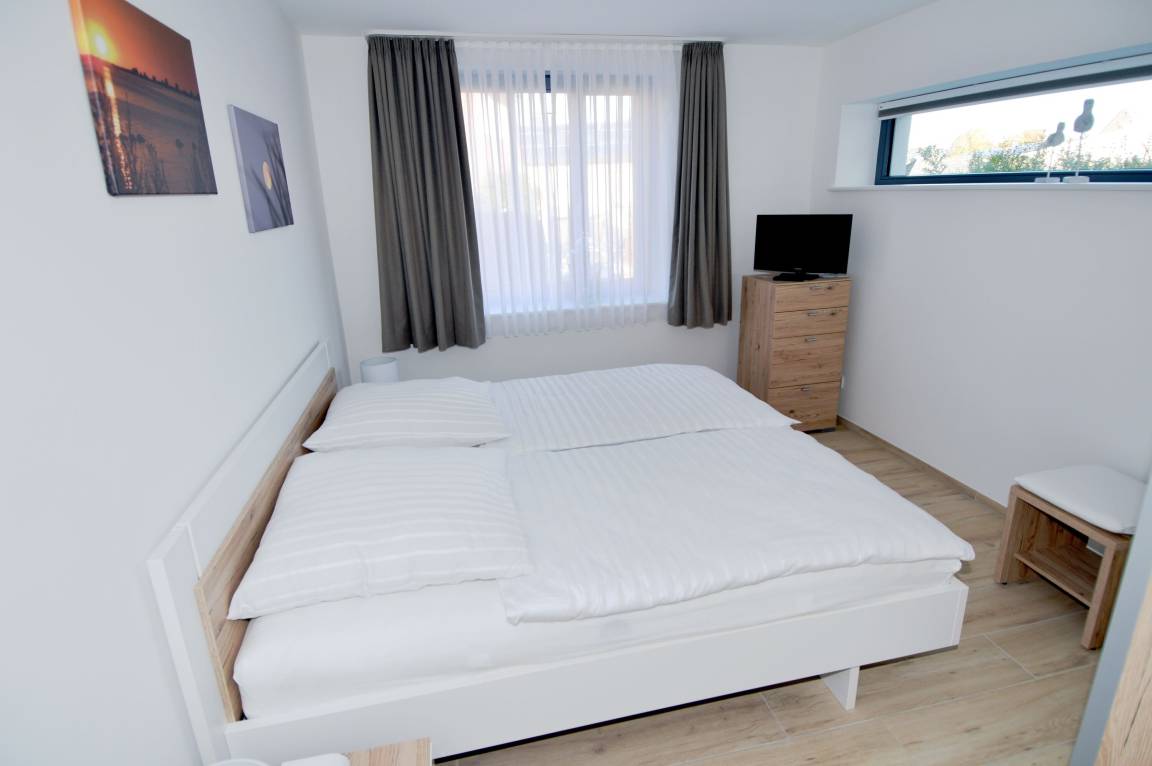 Die Ferienwohnung verfügt über drei geschmackvoll eingerichtete Schlafzimmer, die sich ideal für Familien oder Gruppen eignen. Zwei der Schlafzimmer sind mit komfortablem Ehebett ausgestattet und bieten zudem einen Fernseher, damit Sie auch während Ihres Aufenthalts nichts verpassen. Das dritte Schlafzimmer ist mit zwei Einzelbetten ausgestattet – perfekt für Kinder oder Freunde. Für die kleinen Gäste steht außerdem ein Kinderstuhl bereit.
