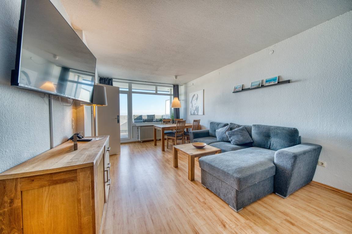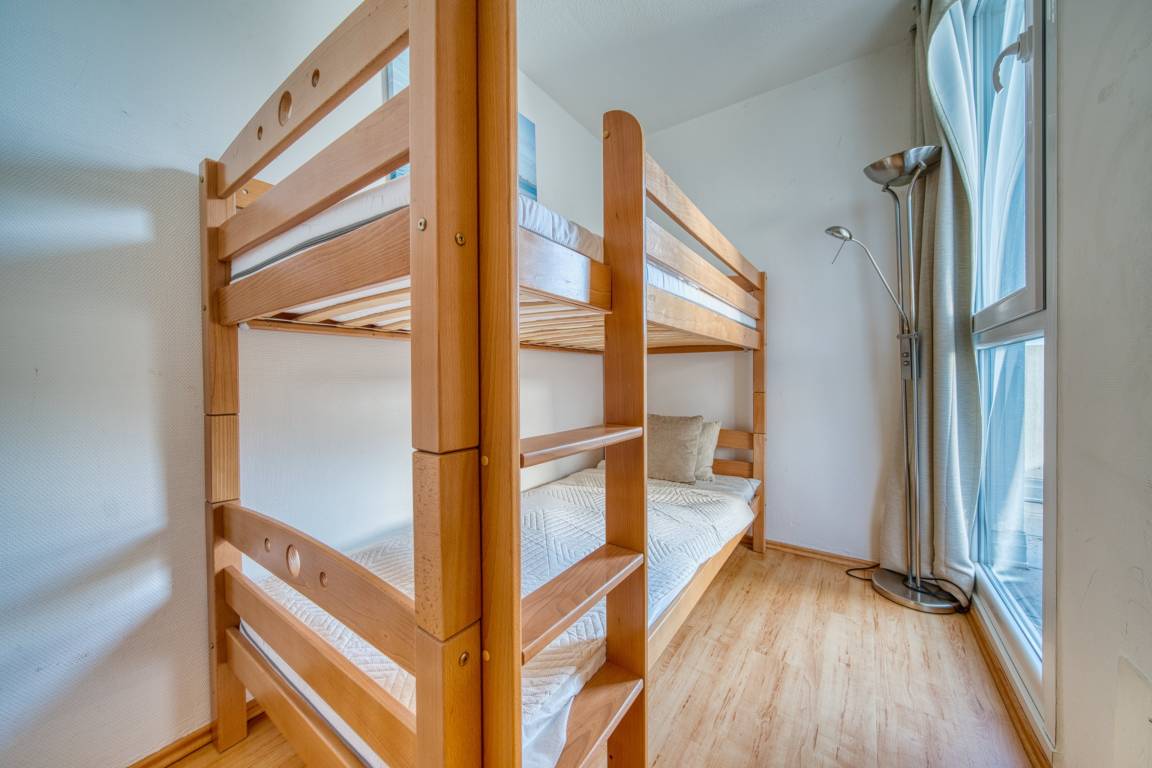 Wohn-Schlafzimmer mit Doppelbett, Eckcouch, Esstisch und TV. Großer Balkon mit Meerblick. Separates Kinderzimmer mit Etagenbett. Küche mit 4-Plattenherd, Kühlschrank/Gefrierfach, Mikrowelle, Wasserkocher und Kaffeemaschine. Kostenloses WLAN. Nichtraucher, keine Haustiere, Fahrstuhl, kostenfreier Parkplatz, abschließbare Fahrradräume. Strand ca. 300 m, Geschäfte, Restaurants und Aktiv-Hus mit Schwimmbad, Sauna, Wellnessbereich und Kinderspielwelt in direkter Nähe. Ideal für entspannte Ostseeferien.