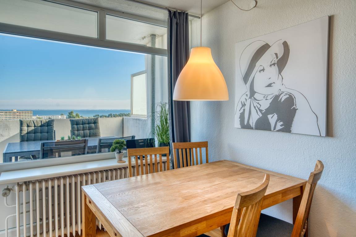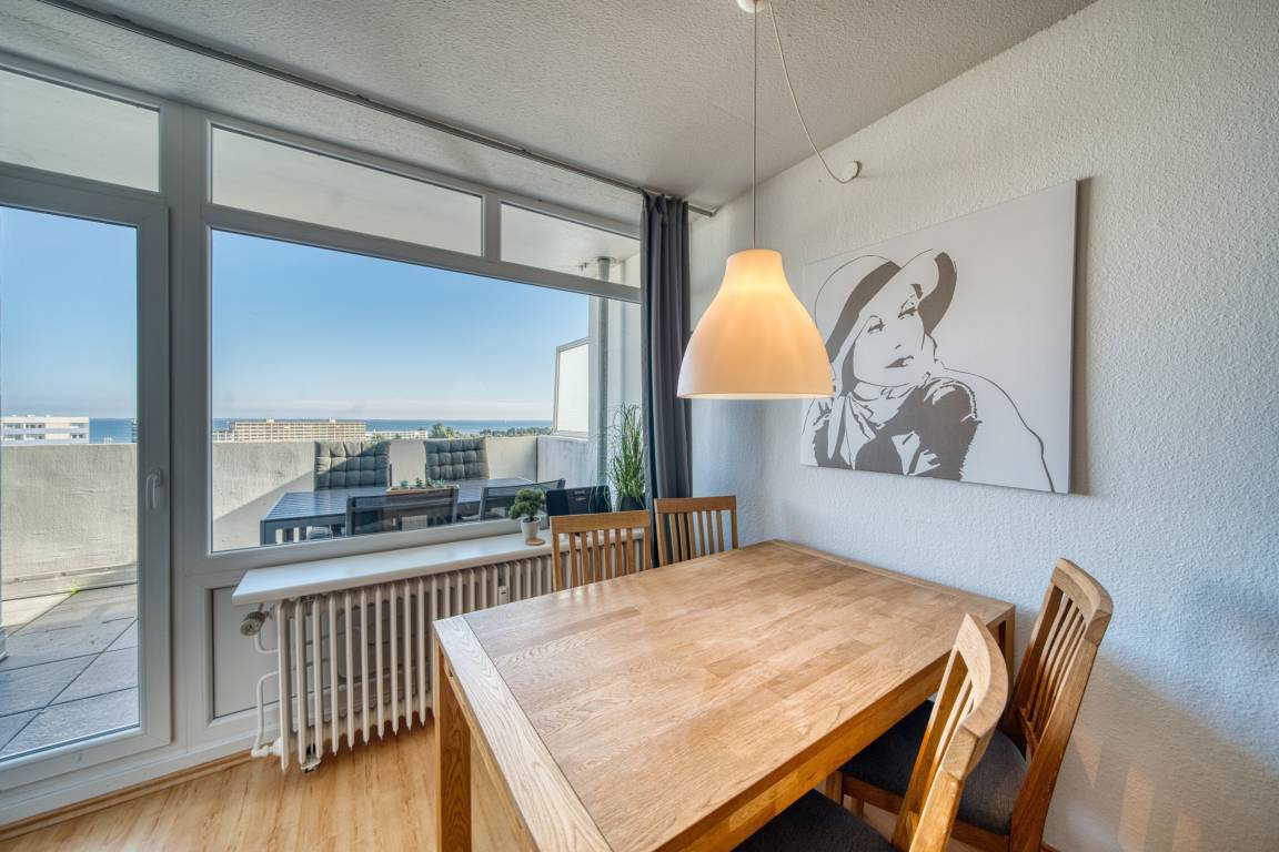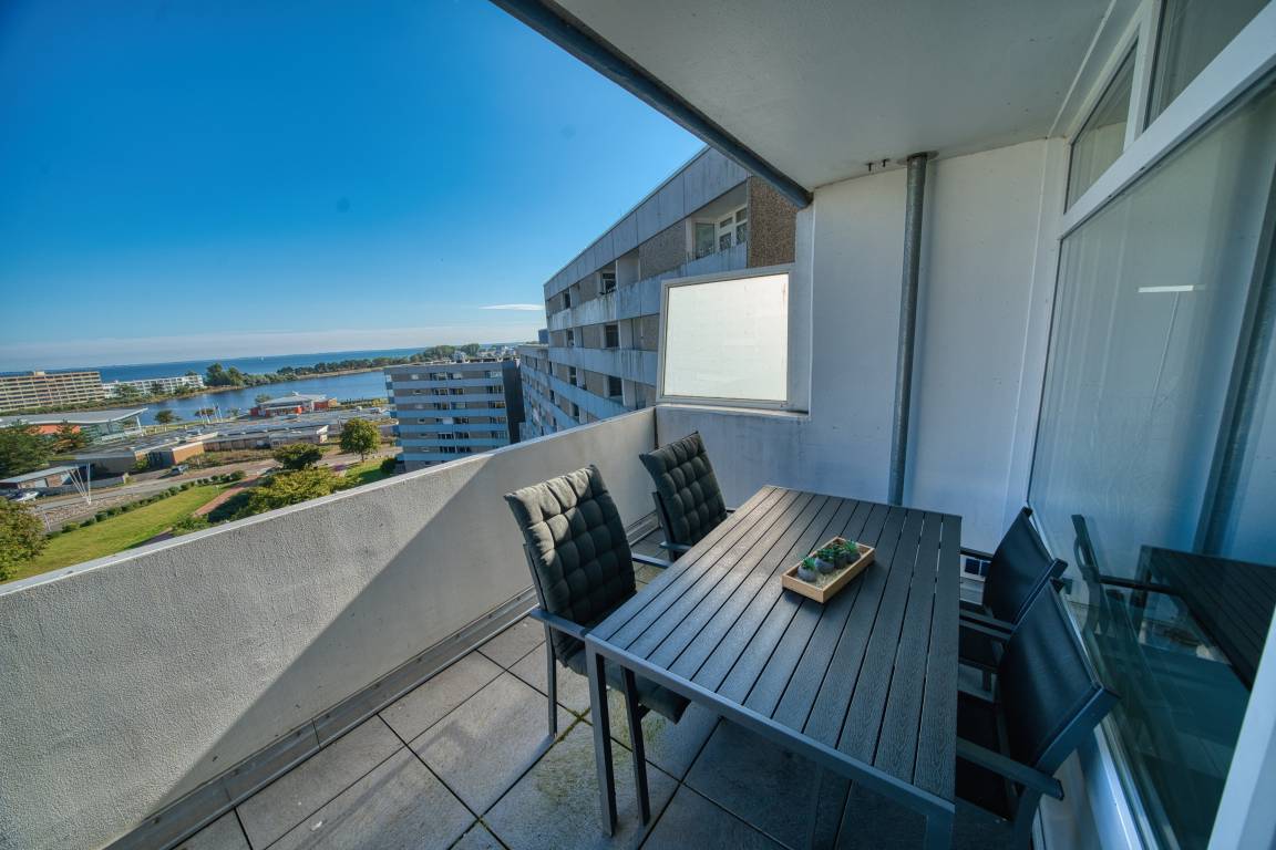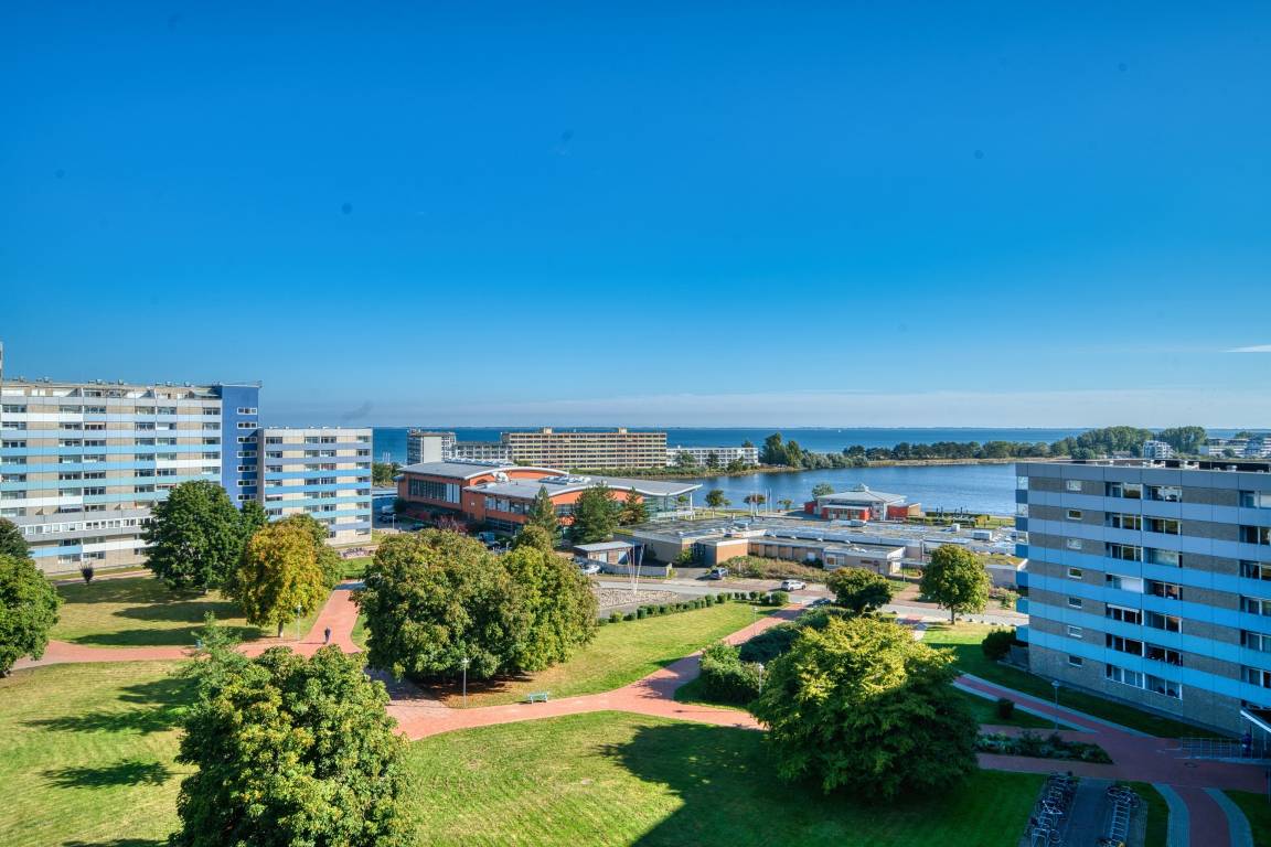 Erleben Sie Ihren Urlaub mit traumhaftem Blick auf die Ostsee in dieser gepflegten Ferienwohnung im Ferienpark Heiligenhafen, Haus L, 8. Etage. Die 45 m² große Wohnung bietet Platz für bis zu 4 Personen und vereint Funktionalität, Gemütlichkeit und eine tolle Lage – ideal für Paare oder Familien.