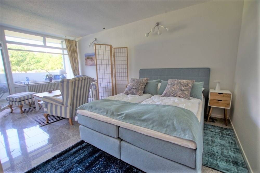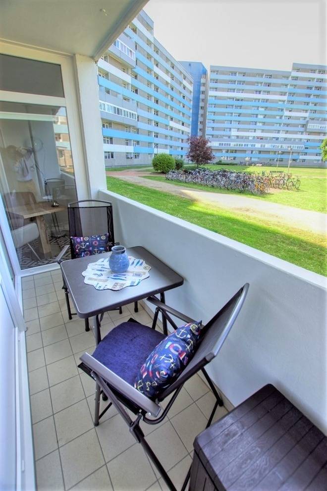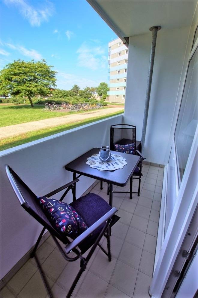 Die Wohnung liegt im Haus N Ferienpark, im Erdgeschoss, mit Balkon zum Innenhof, der einen schönen Blick auf die Grünanlagen bietet.