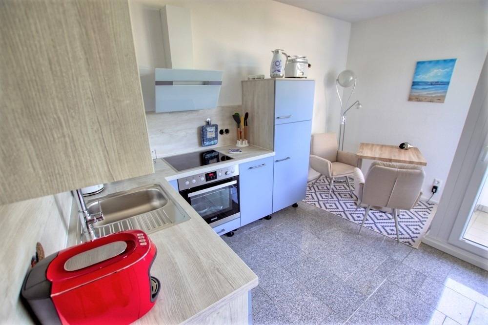 Voll ausgestattete Küche mit Kühlschrank und Gefrierfach, Mikrowelle, 4-Platten-Ceranherd mit Backofen und Geschirrspüler