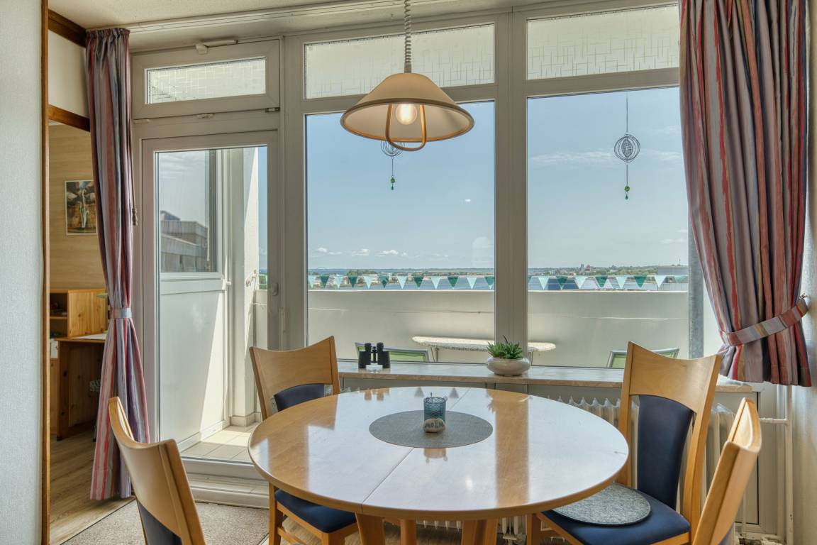 Diese 45 m² große Ferienwohnung im 10. Stock des Hauses H bietet Platz für bis zu 4 Personen und besticht durch den Balkon mit Blick über den Binnensee bis zur Ostsee. Wohn-Schlafbereich mit zwei Einzelbetten, separates Schlafzimmer mit Etagenbett, Laminatboden, Sofa, Sessel, Esstisch und Flachbild-TV. Küchenzeile mit Ceranherd, Kühlschrank mit Gefrierfach, Mikrowelle, Kaffeemaschine, Wasserkocher und Toaster. Bad mit WC und Duschkabine. Bonus: kostenfreies WLAN. Nichtraucherwohnung, keine Haustiere, Fahrstuhl, abschließbare Fahrradräume, ca. 300 m zum Strand, kostenloser Parkplatz. Aktiv-Hus, Shops und Restaurants nur wenige Schritte entfernt.