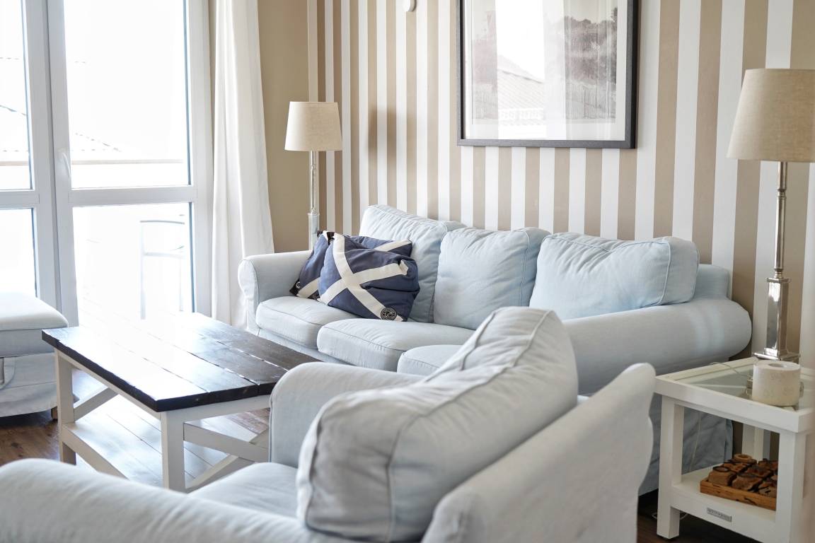 Das maritime Feeling bekommt ihr also nicht nur beim Blick von einem der drei Balkone, sondern auch im gesamten Apartment. Ob beim gemütlichen Essen am Tisch oder Relaxen auf der Couch vor einem der drei Flat-TVs.