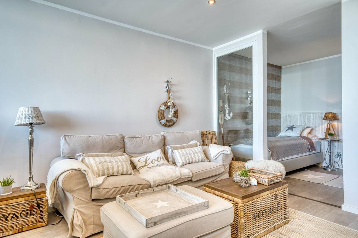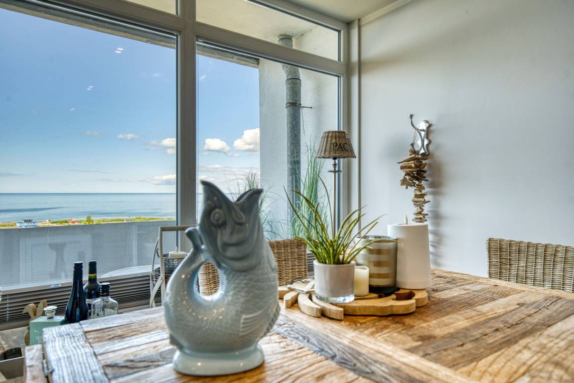 Exklusive Ferienwohnung im 12. OG mit atemberaubendem Ostseeblick. Platz für bis zu 4 Personen: Schlafbereich mit zwei Einzelbetten, Kinderzimmer mit Etagenbett. Stilvolle Einrichtung im Beachhouse-Stil mit hochwertigen Riveria Maison Möbeln, Vinylboden und hellem, einladendem Ambiente. Voll ausgestattete Küche mit Cerankochfeld, Backofen, Geschirrspüler. Modernes Bad mit allem Komfort. Südbalkon für entspannte Stunden und Essbereich mit Meerblick. Nur ca. 300 m zum Strand, kostenlose Parkplätze, Fahrstuhl und abschließbare Fahrradräume. WLAN inklusive, Nichtraucherwohnung, keine Haustiere. Perfekt für Familien und Paare, die Stil, Komfort und eine Top-Lage an der Ostsee schätzen.