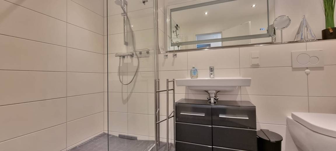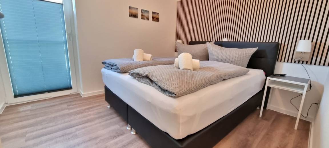 Das Schlafzimmer ist mit hochwertigen Boxspringbetten (160x200 cm) ausgestattet, die für einen erholsamen Schlaf sorgen. Das Badezimmer besticht durch eine moderne Walk-in-Dusche, eine Handtuchheizung, einen Kosmetikspiegel sowie einen Fön, wodurch Sie einen komfortablen Start in den Urlaubstag genießen können.