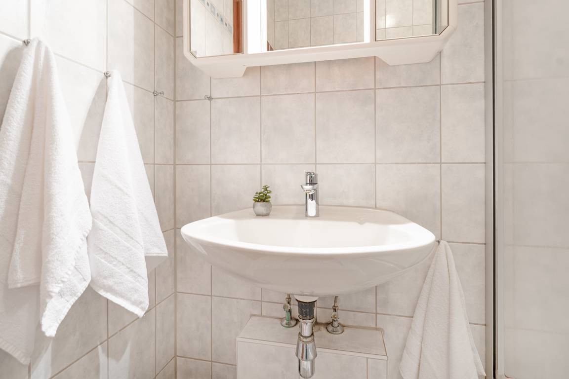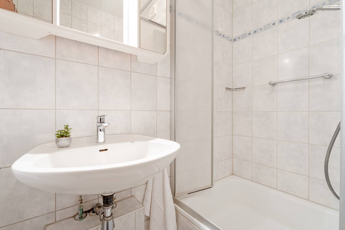 Das charmante Badezimmer ist mit einer Dusche, einem Waschbecken, beheizbarem Handtuchhalter und einem Haartrockner ausgestattet. Eine gemeinschaftlich nutzbare Waschmaschine, sowie ein Trockner stehen Ihnen gegen Gebühr ebenfalls zur Verfügung.