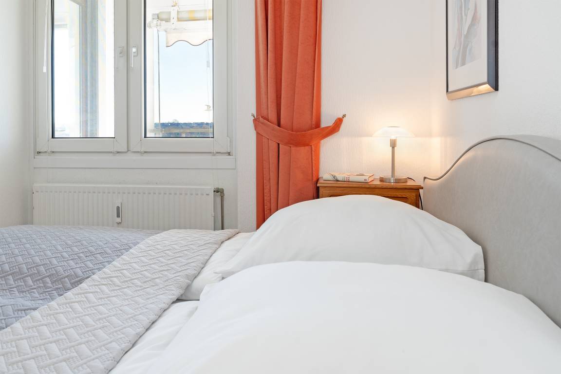 „Schöne Aussicht aus der 5. Etage auf den See. Der Insektenschutz an der Balkontür und im Schlafzimmer war sehr gut. Es fehlten Müsli Schalen und ein zweiter Wohnungsschlüssel da wir zu zweit waren. Super der kurze Weg zum Strand.“