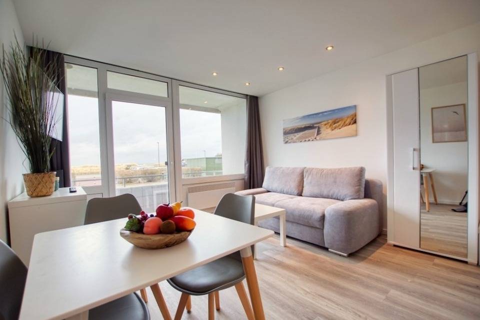 Ihr Hund ist willkommen. Weitere Annehmlichkeiten sind ein eigener Pkw-Stellplatz, gemeinschaftlicher Fahrradkeller, die unmittelbare Strandnähe (ca. 10 m) und der Ferienpark mit Geschäften, Gastronomie und Freizeiteinrichtungen in ca. 5 Gehminuten.