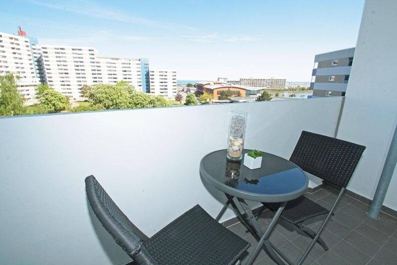 Nach einem langen Tag voller Erlebnisse können Sie auf dem Balkon mit Weitblick zur Ostsee entspannen. Gönnen Sie sich eine Tasse Kaffee oder ein Glas Wein und genießen Sie den Ausblick.