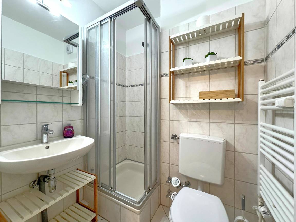 Die Duschkabine im Badezimmer sorgt dafür, dass Sie nach einem Tag am Strand immer frisch und erholt fühlen.