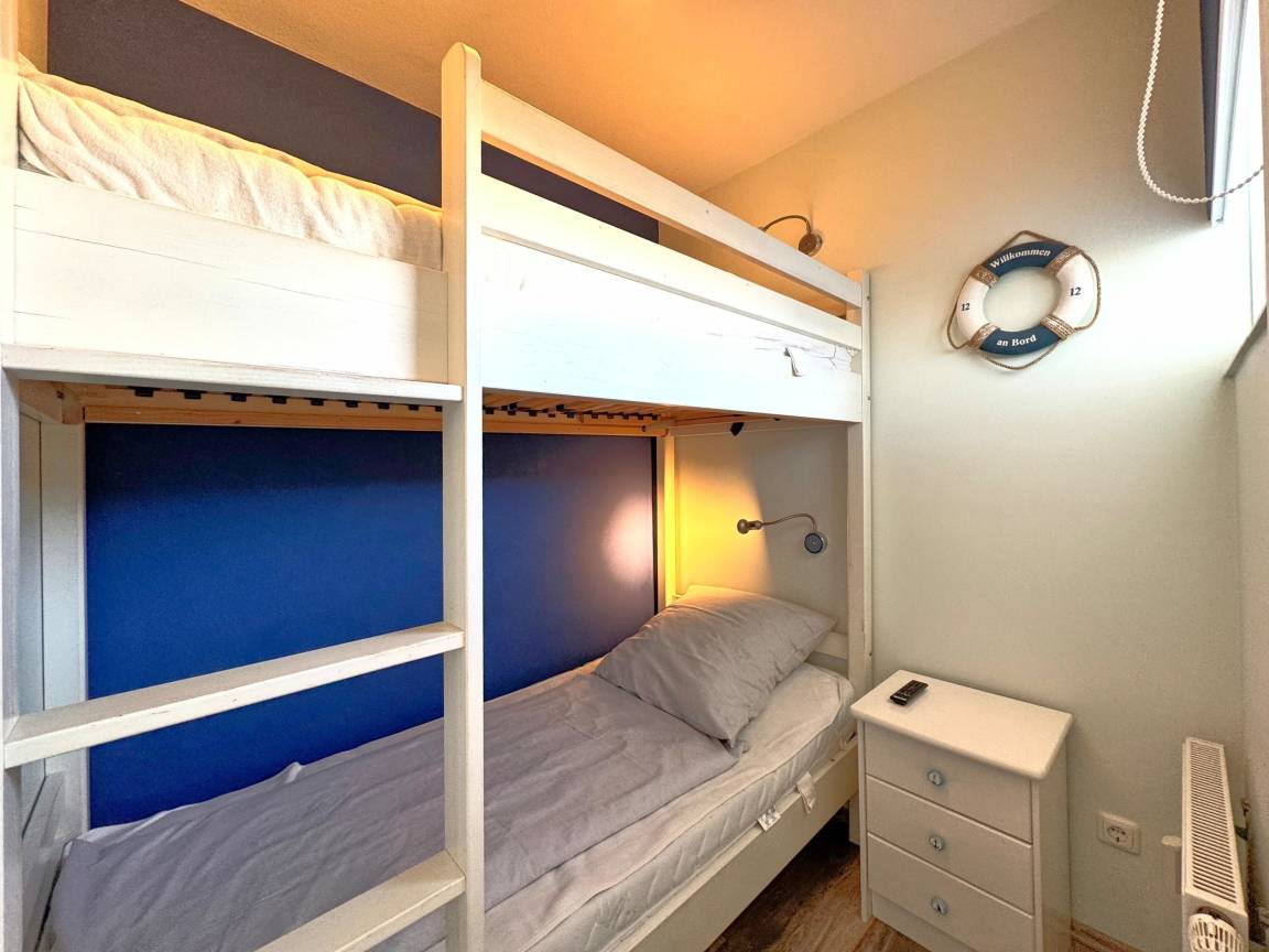 Für erholsame Nächte sorgt der separierte Schlafraum, der durch eine Tür abgetrennt ist. Ausgestattet mit einem komfortablen Doppelbett und einem eigenen TV, ermöglicht er den Eltern, Privatsphäre und Ruhe zu genießen. Der dazugehörige kleine Schlafraum ist perfekt für die Kinder: Das Etagenbett bietet nicht nur Schlafplatz, sondern auch einen Hauch von Abenteuer und einen eigenen Fernseher. Beide Zimmer sind liebevoll gestaltet und bieten eine einladende Atmosphäre.